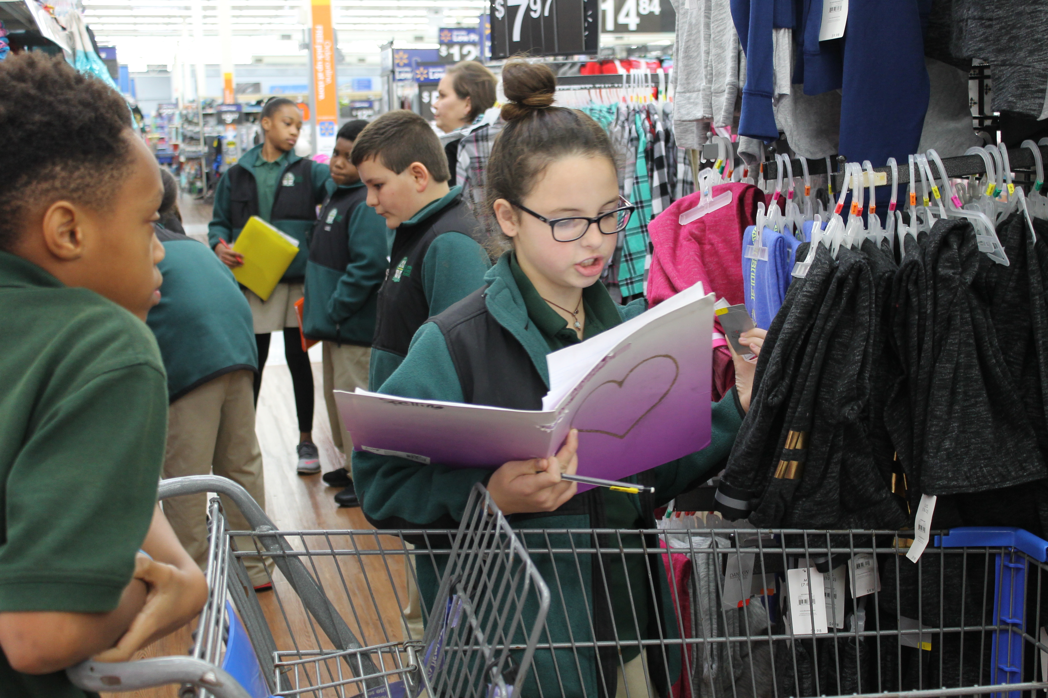 GREENVILLE – (first photo) Chaunce’ White, left, Kent Tonos and Abigail Duthu, sixth graders from St. Joseph School, shop for needy children as part of their Advent service project. Each Christmas, students collect money for local children to ensure every little boy or girl has something for Christmas. The students develop a budget and do their own shopping. This year each of the seven groups collected $175 for their special child. (Photos by Missi Blackstock)