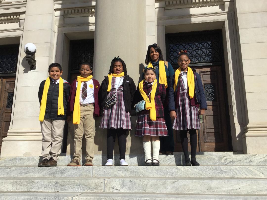 The letter was only part of the effort to support this issue. Students from across the diocese attended a School Choice rally at the capitol on Tuesday, Jan. 23. Wearing bright gold scarves, the students provided a backdrop for advocates to speak to lawmakers about the bill.