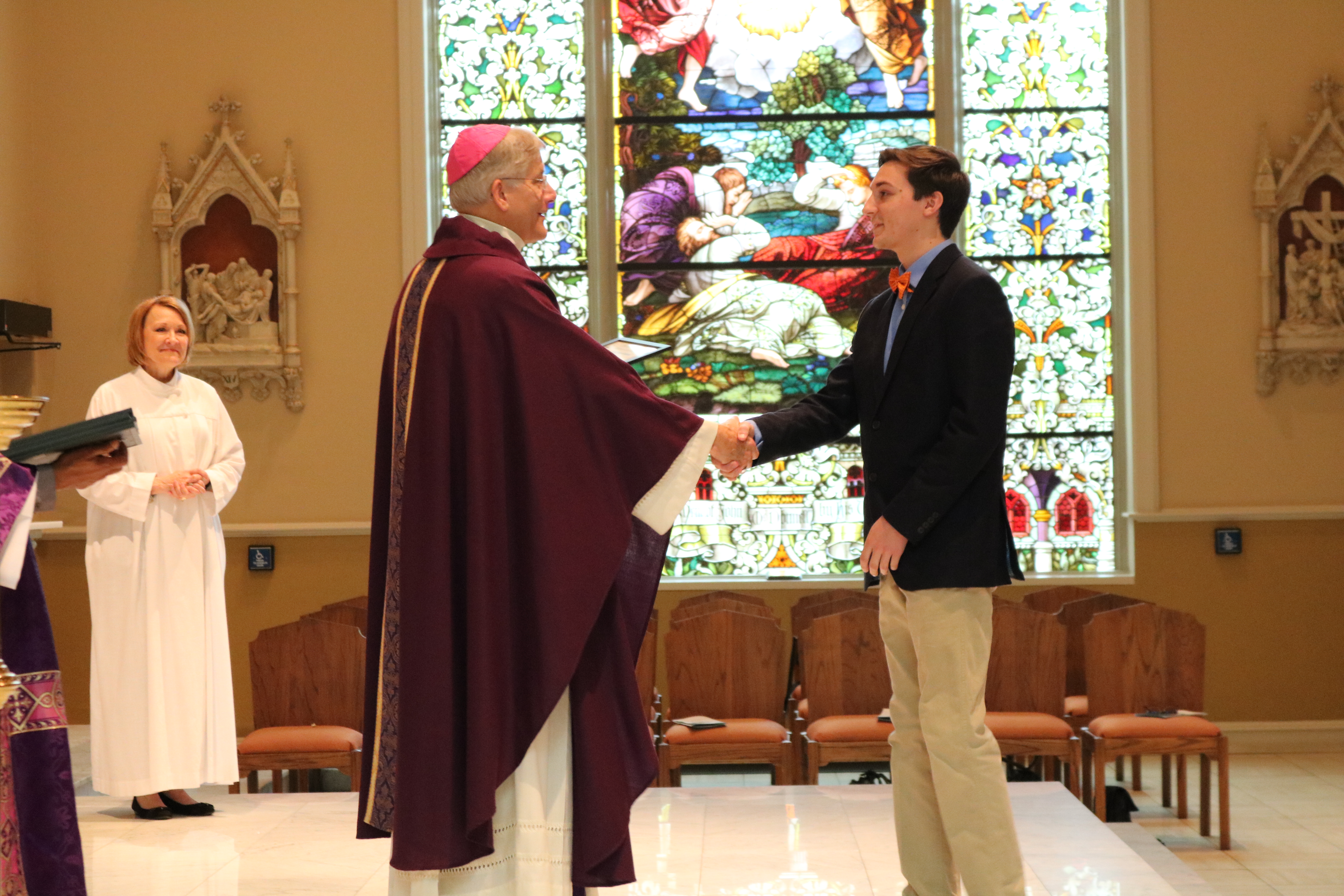 JACKSON – Nineteen adults and nine young people received the Bishop John Joseph Chanche Award for service on Saturday, Feb. 24, in the Cathedral of St. Peter the Apostle. Bishop Joseph Kopacz distributed the awards during a special Mass. The Chanche medals, named for the first bishop of the diocese, honor those who give of themselves to their parish or faith community. The awards are presented on the weekend closest to the Feast of the Chair of St. Peter, the patronal feast for the Diocese of Jackson.