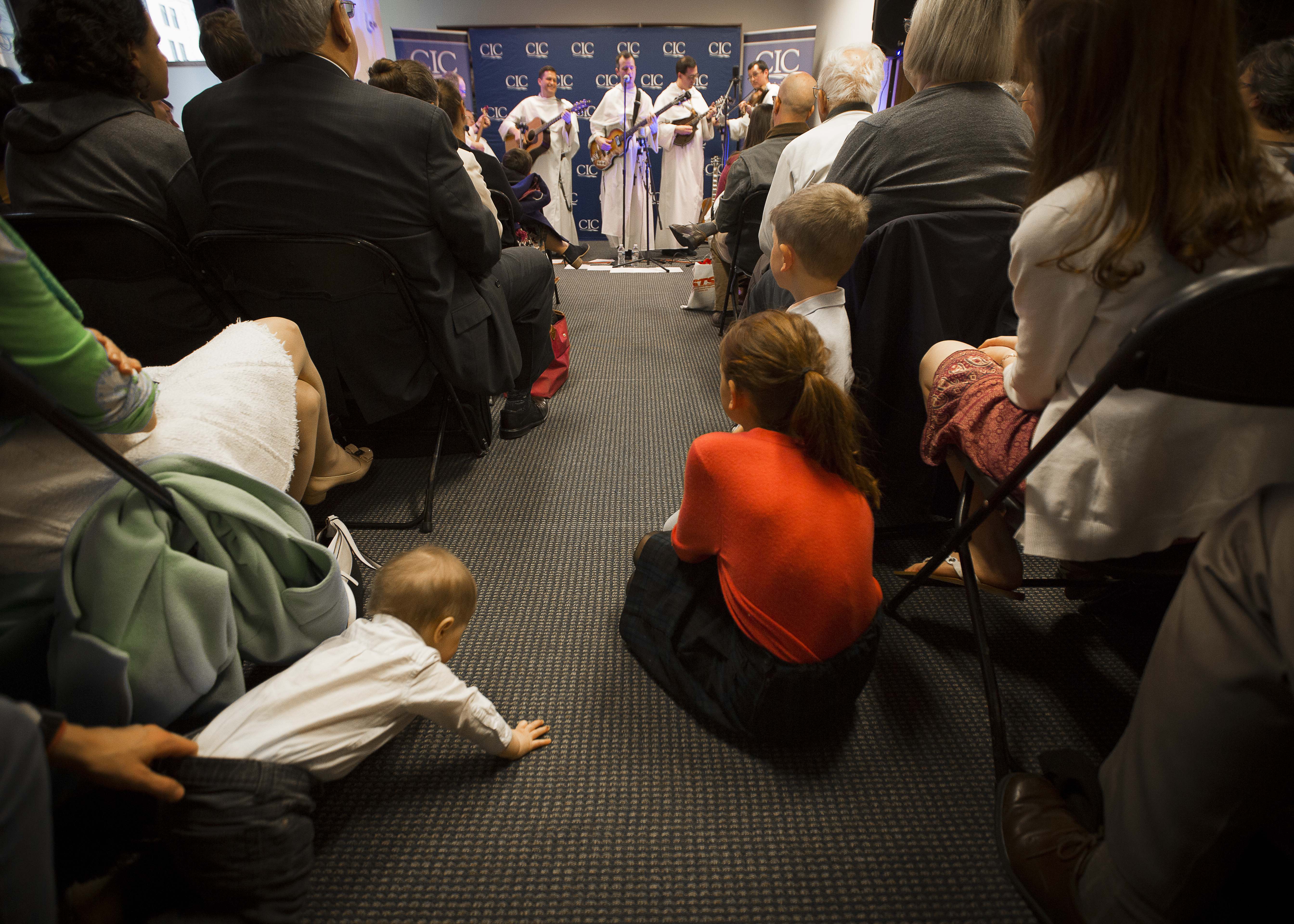 That happiness was tangible as six of the Hillbilly Thomists played to a standing-room-only crowd April 11 at the Catholic Information Center in Washington. Middle-age men tapped their feet and babies clapped their hands to the tunes. The musicians laughed with each other as they created the proper setting for bluegrass music, which they said is usually played informally around a kitchen table.