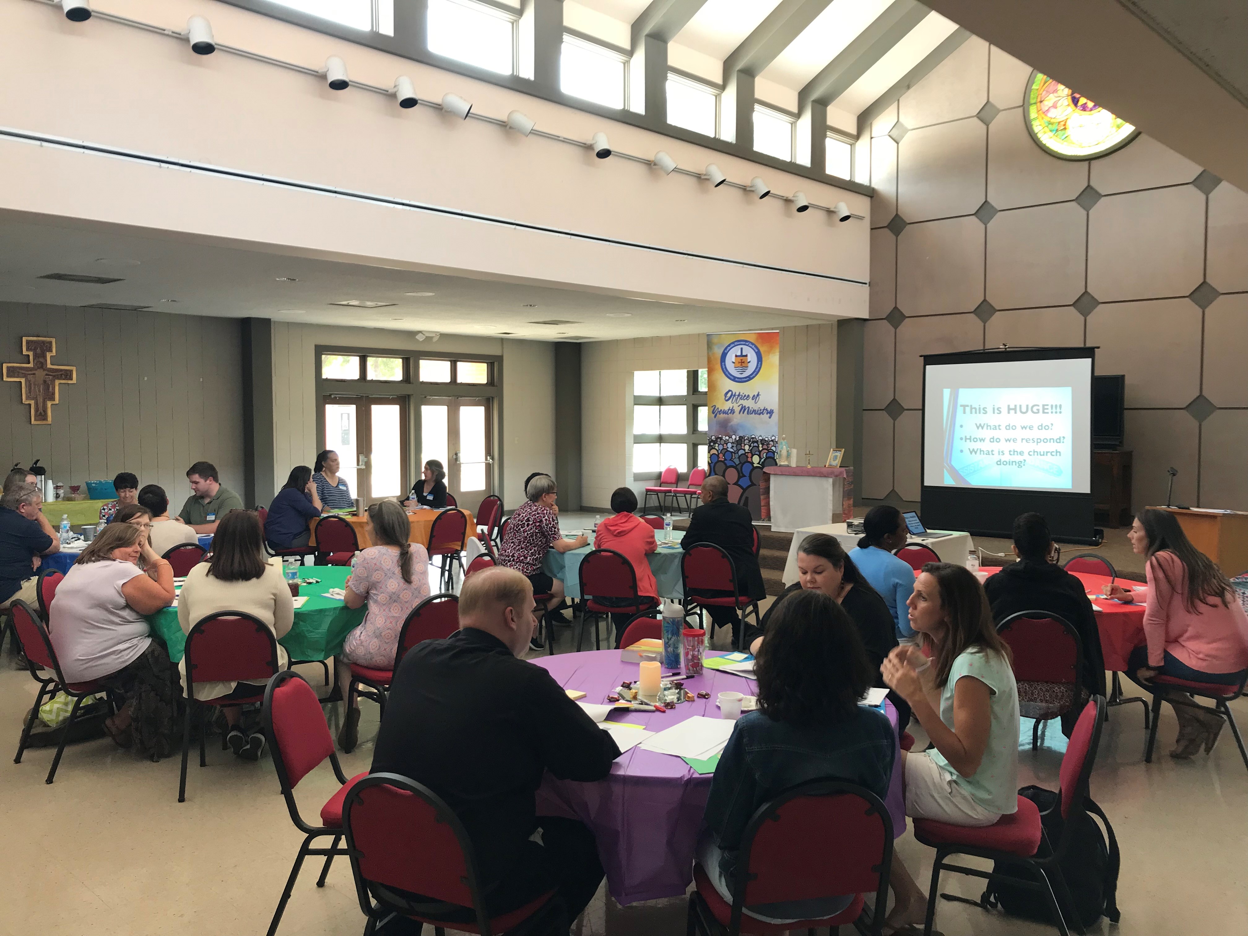 The agenda included Youth Culture/GenZ, study from St. Mary’s Press called “Going Going Gone,” the Pre-Synodal Document on “Young People, the Faith and Vocational Discernment,” Creating a Vision in Ministry, Spirituality of a Youth Leader and best practices for youth ministry. The presentation involved prayer, discussion, activities, multimedia, and resources for youth ministers to take home to their parishes. Abbey Schuhmann, coordinator for youth ministry for the diocese, coordinated the day, compiled the materials and lead the workshop.