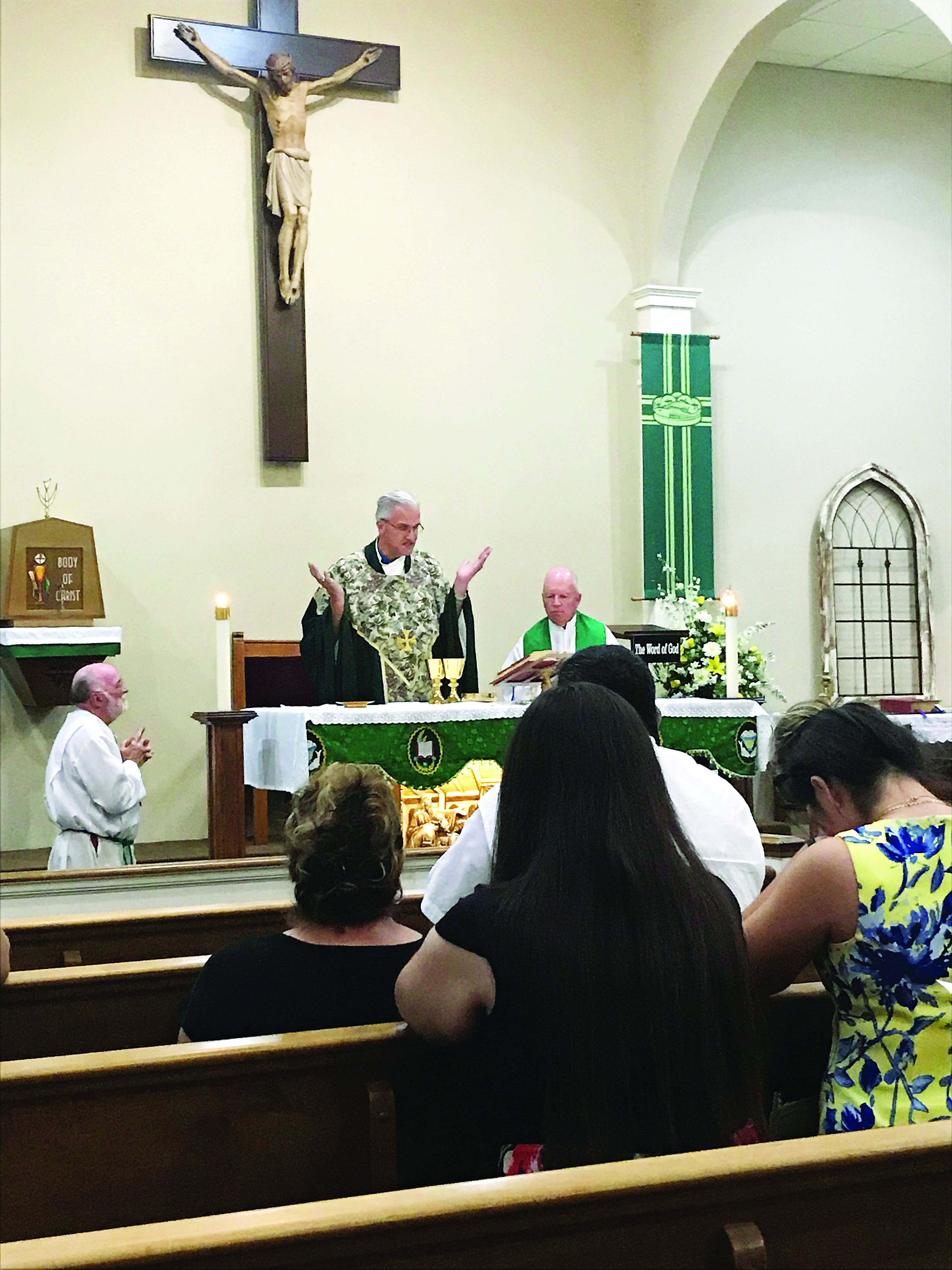 GRENADA – St. Peter Parish in Grenada celebrated the first bilingual Mass Sunday, September 16. Redemptorist Father Scott Katzenberger came from his community residence in Greenwood to celebrate the Mass. A fiesta followed in the parish hall.