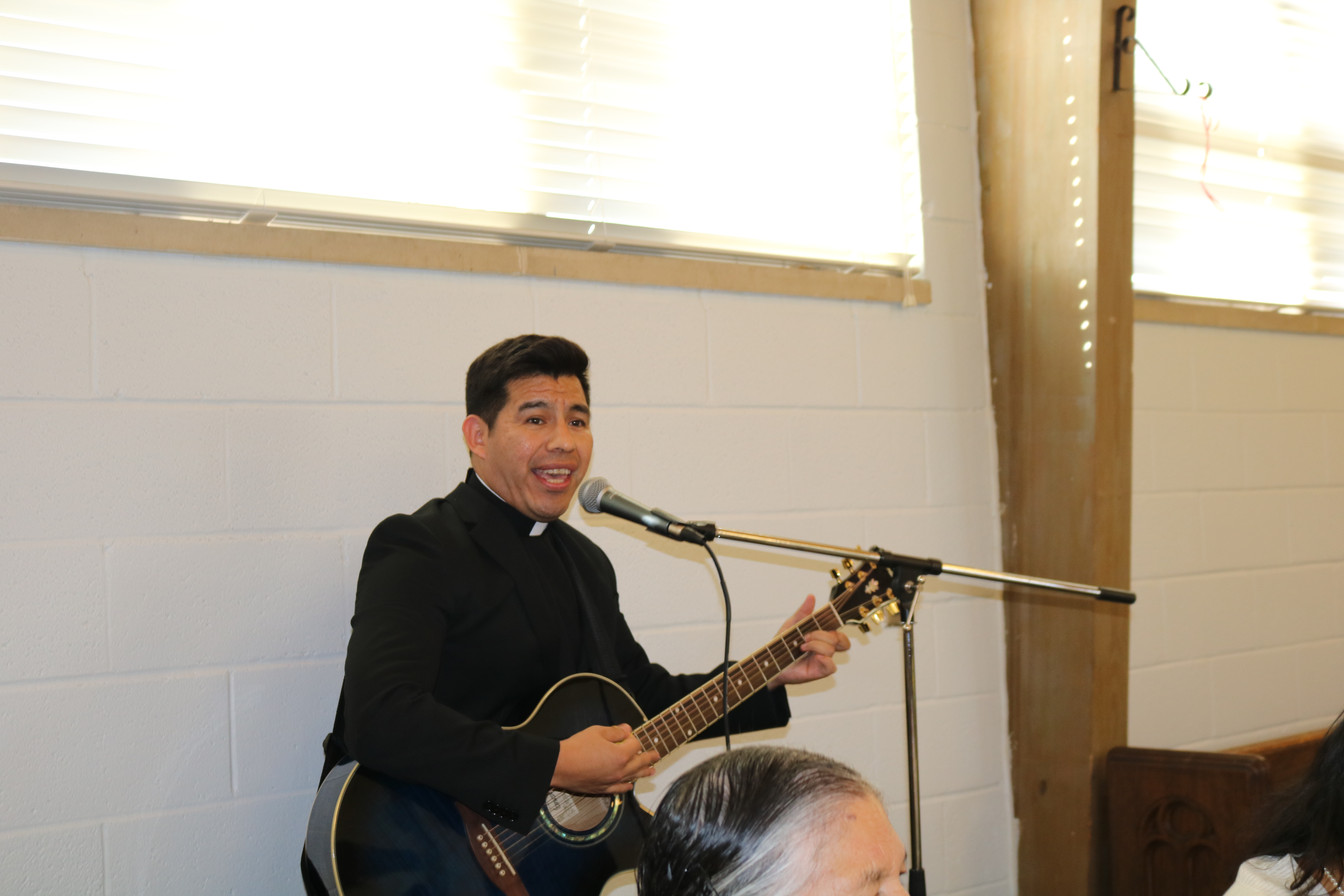 Sanchez thanked his brother and sister-in-law who attended the Mass, as well as his spiritual family who packed the church for the Mass and invited everyone to a reception in the parish center following Mass. He even played his guitar and sang at the reception. He has served at the parish for more than a year.