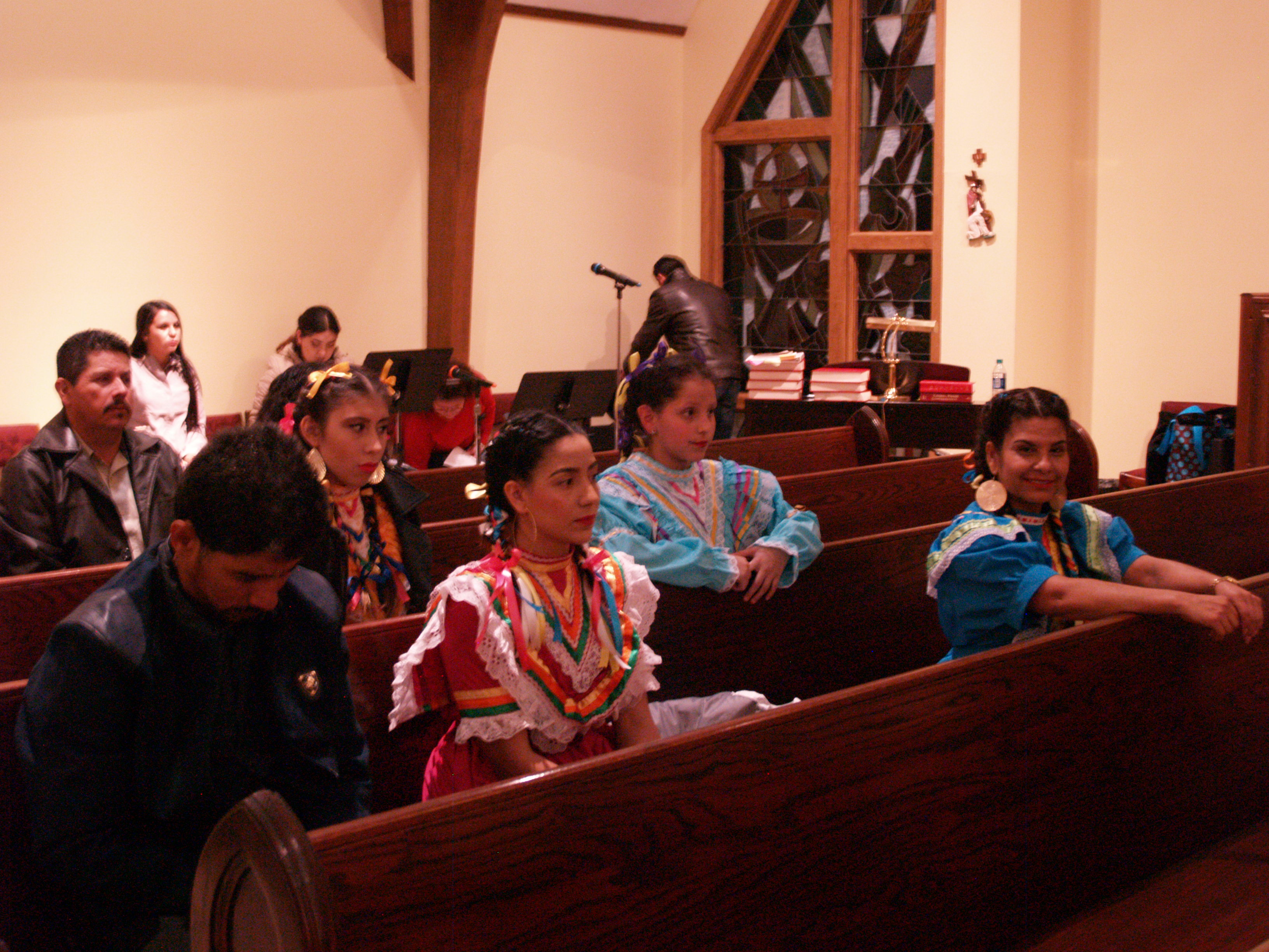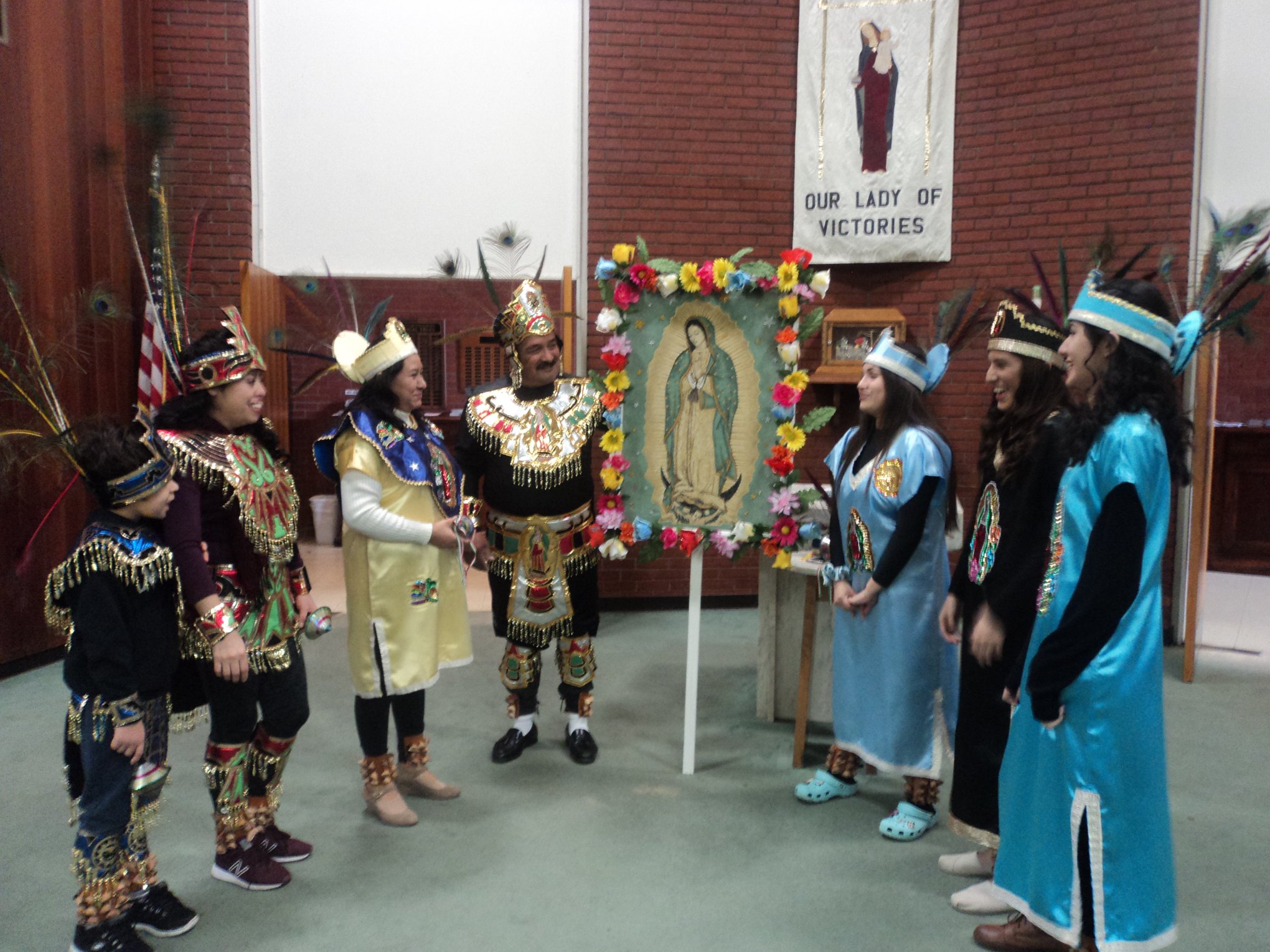 Catedral de San Pedro. Danza azteca, llamado del caracol, incienso y fe sin zapatos. Estos son algunos de los atributos del grupo de baile dirigido por Celia Alemán. Desde el 2012 este grupo presenta, además de la danza azteca, bailes folclóricos mexicanos. La celebración incluye una procesión simultánea con el rosario, incienso y en cada reposo” …se suena el caracol a los cuatro vientos, en señal de agradecimiento por los bienes recibidos… y se comienza a bailar” explica Celia