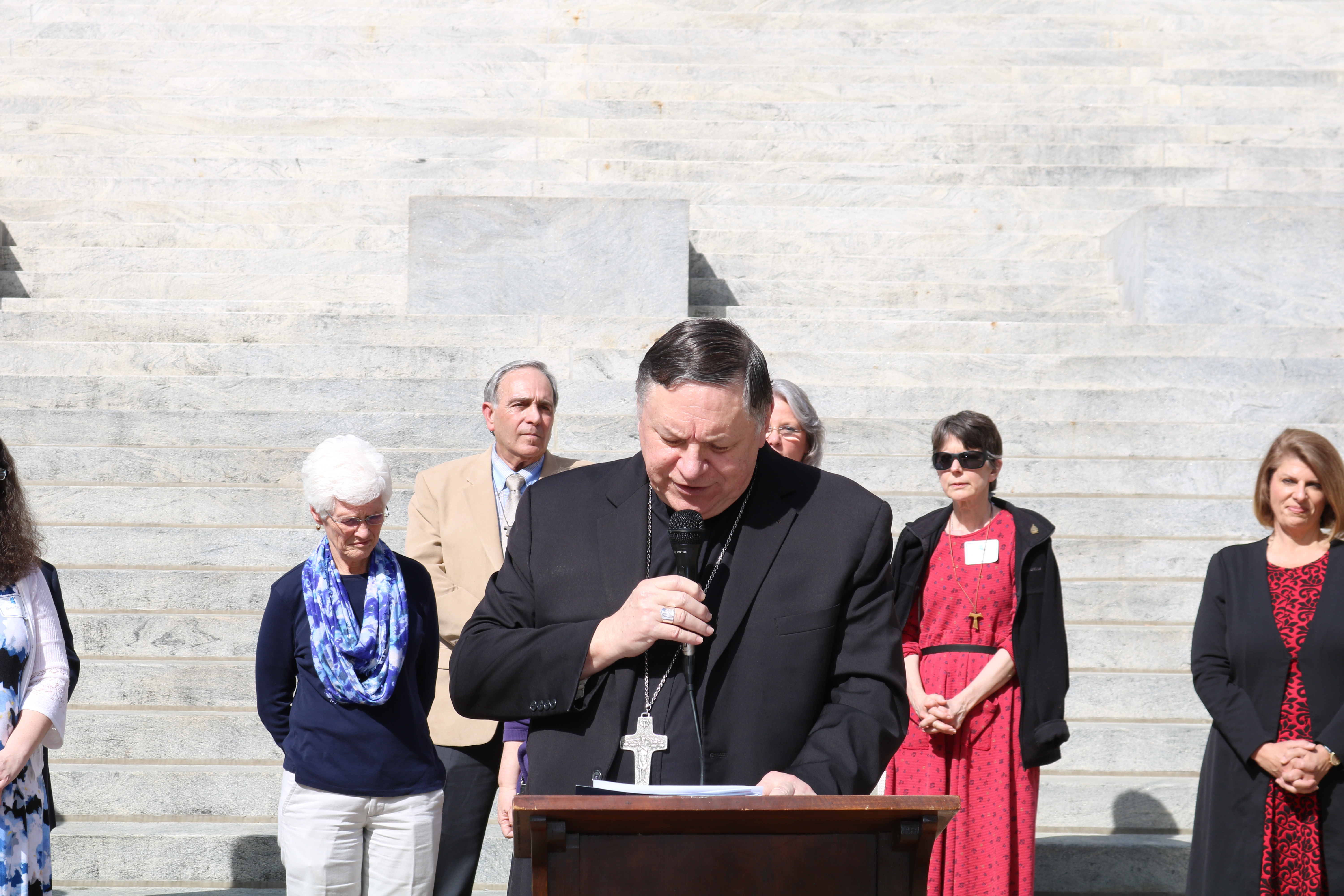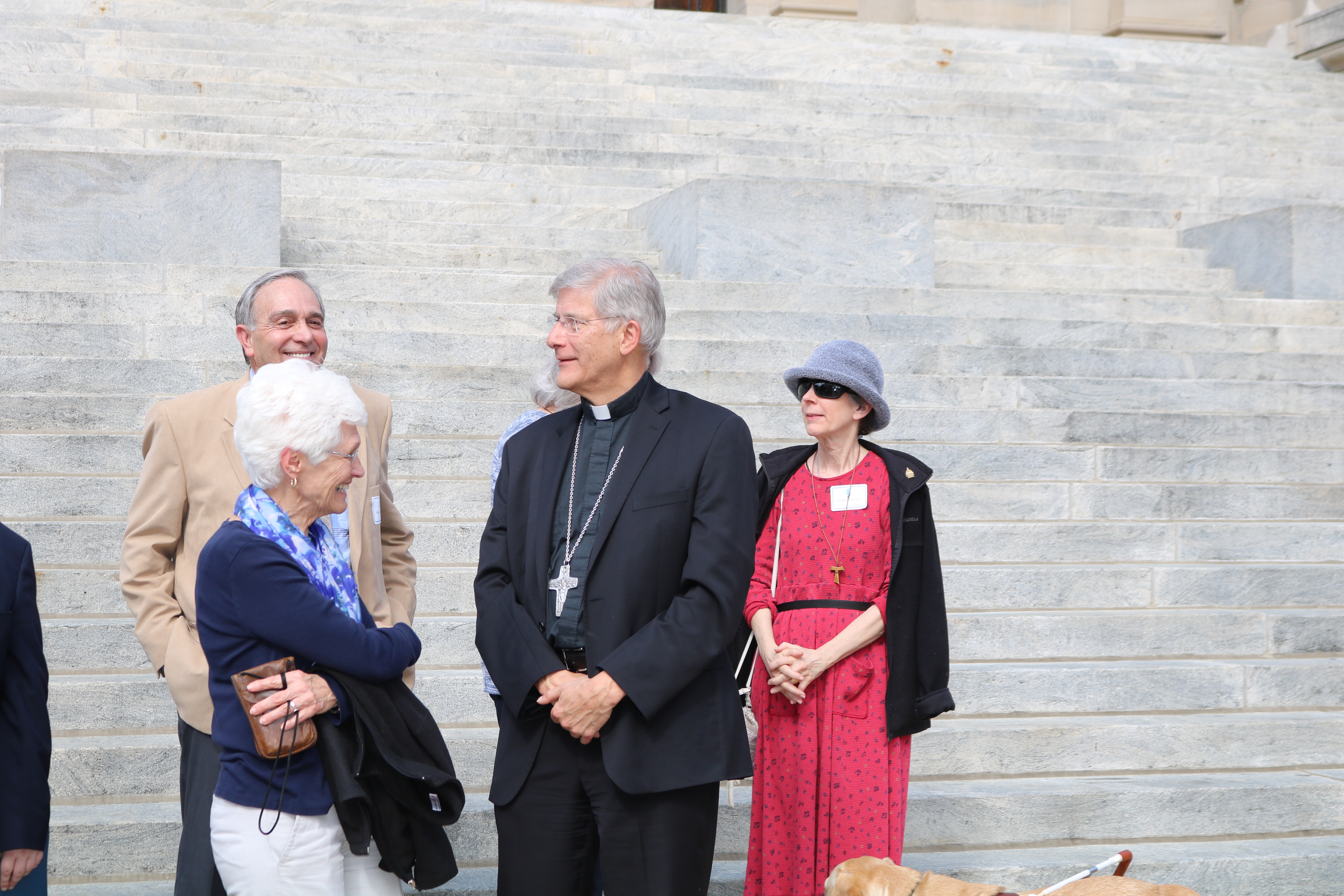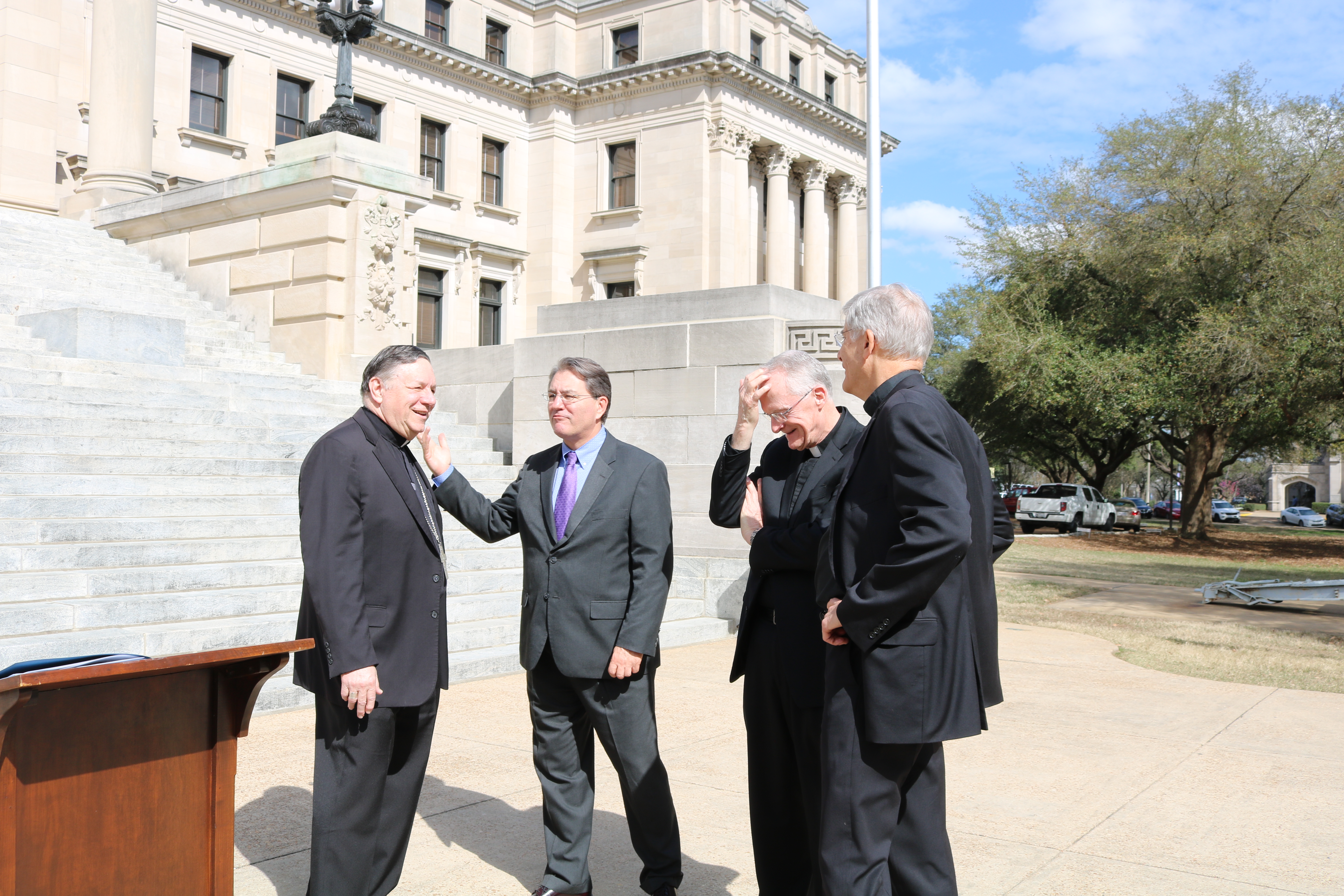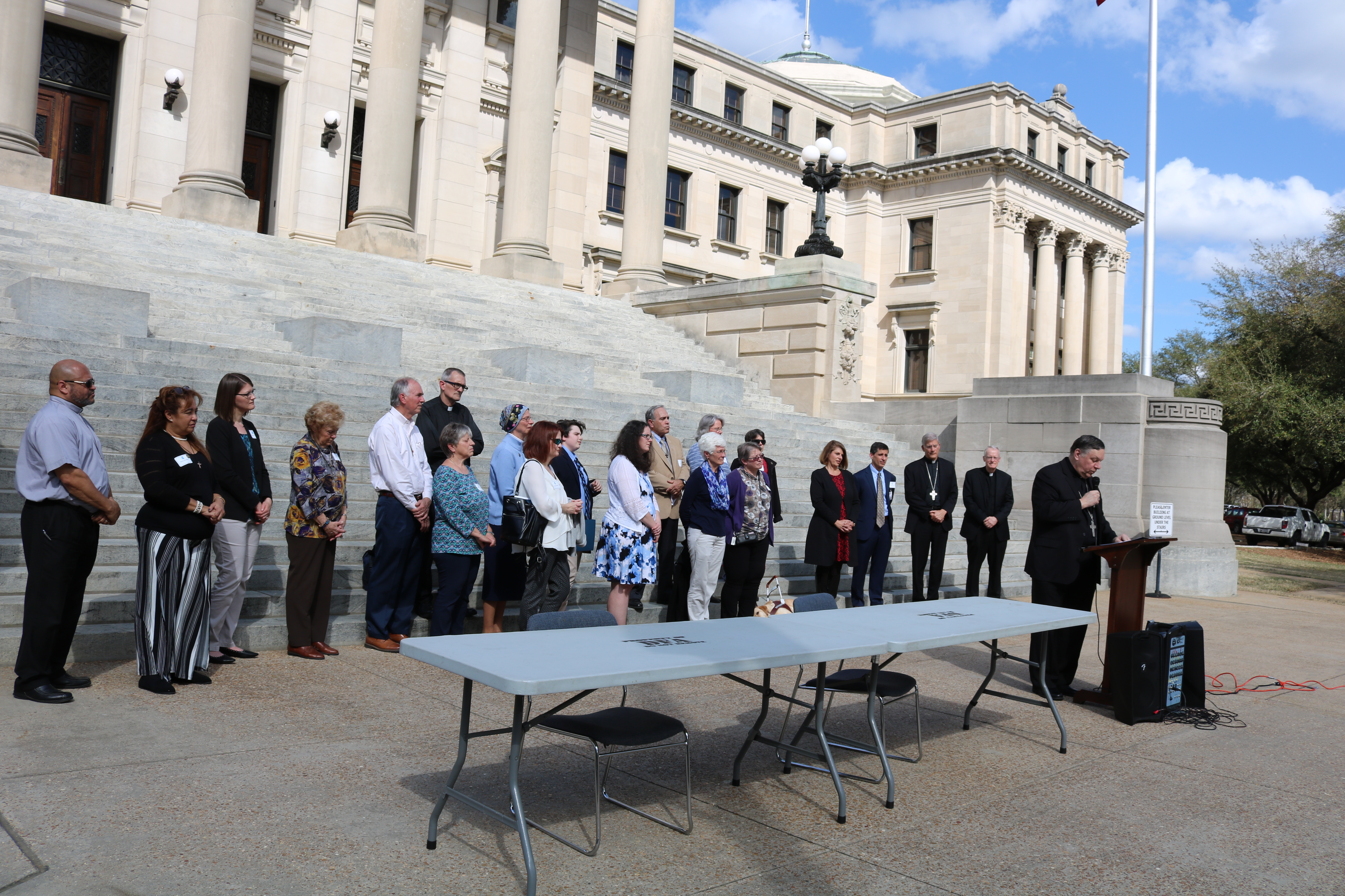 Participants gathered at the Capitol for a news conference in the early afternoon. Bishop Louis Kihneman, Bishop of Biloxi, read a joint statement from himself and Bishop Joseph Kopacz of the Diocese of Jackson. “For compelling reasons, there is a growing consensus throughout our state that punishment must be accompanied by rehabilitation and restoration to community and society,” read the bishop. “We are here today to add our voices, values and experience to the quest for a more just and peaceful society, the visible expression of the Kingdom of God in our midst.”