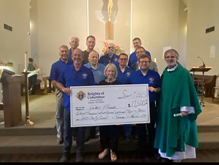 The donation marked the culmination of the Knights’ summer project, which included selling tickets to their annual charity concert and securing contributions from local businesses. Ticket sales began in May and concluded with the concert on Aug. 2 at the Catholic Life Center on the grounds of St. James.