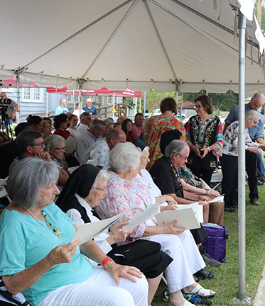 MAGNOLIA – Parishioners and guests gathered under large white tents outside St. James the Greater Parish to celebrate the church’s long-awaited 150th anniversary, a celebration delayed several years by the pandemic. Among those attending were the School Sisters of Notre Dame – Sister Gemma Marie Dittle, Sister Sue, and Sister MarieClare Powell – who traveled from St. Anthony Gardens in Covington, Louisiana. The sisters were once a vibrant part of parish life through their ministry at St. Mary of the Pines in nearby Chatawa, which closed in 2020. The festive day also included music, food, and fellowship as parishioners and friends rejoiced in the enduring faith community of Magnolia. (Photos by Tereza Ma)