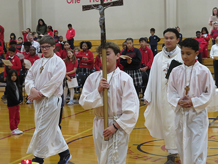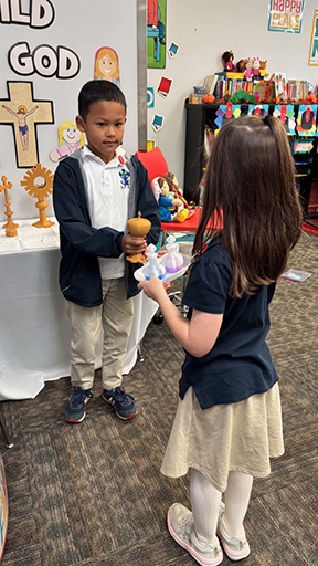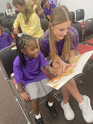 MADISON – Older toddlers at the Early Learning Center at St. Francis of Assisi in Madison sit together during a classroom activity. (Photo courtesy of school)MADISON – Seniors McKenzie Cummings and Thierry Freeman, both students at St. Joseph Catholic School in Madison, anchor the award-winning, student-produced weekly newscast Bruin News Now on location in Nashville. Junior Jason Buckley mans the camera. Cummings, Freeman and Buckley were among a group of St. Joseph journalism students who attended the national high school journalism convention sponsored by the Journalism Education Association and the National Scholastic Press Association Nov. 13–16. (Photo courtesy of school)MERIDIAN – Eric Yoeun, left, and Maura Lane Owen, first-grade students at St. Patrick School, practice the Mass on Nov. 11, 2025. (Photo courtesy of school)VICKSBURG – St. Al Senior Briley Lott reads with her kindergarten buddy, Rykira Bradford, during a fall buddies gathering. (Photo courtesy of school)NATCHEZ – Senior Grayson Gay and first-grade student Noah Loyed play bingo together at Cathedral School. (Photo courtesy of school)CLARKSDALE – First-grade students at St. Elizabeth School pose with members of the Clarksdale Fire Department during a Blue Mass on Sept. 11, offering prayers for first responders and all who help keep the community safe. (Photo courtesy of school)GREENVILLE – St. Joseph High School students John Paul Rogers, Jacob Powers, Santo Borganelli and Jada Hicks take notes during a music appreciation class. (Photo courtesy of school)SOUTHAVEN – Students at Sacred Heart School participate in the opening procession for the celebration of Mass, with Ben Baskin serving as cross bearer alongside altar servers Michael Lickteig, left, and Gustavo Bermudez. (Photo courtesy of school)HOLLY SPRINGS – Holy Family School students engage in hands-on coding activities as part of a classroom lesson. (Photo courtesy of school)MADISON – St. Anthony School fifth-grade students Josephine Klar and Patrick Harris conduct a chlorophyll experiment during a science class in Mrs. Moorehead’s laboratory on Sept. 11. This moment reflects school community because curiosity, collaboration and inquiry are at the heart of St. Anthony’s learning and STEM centered curriculum. (Photo courtesy of school)JACKSON – Charles Speech walks with students at Sister Thea Bowman Catholic School, including Haniel and Hanry Chia, Ja’Kayla Davis, Eliel Cattenhead and Zachary Gordon. (Photo courtesy of school)JACKSON – Students at St. Richard Catholic School present a whole-school Advent program directed by Andrew Ladd on Dec. 19. (Photo courtesy of school)COLUMBUS – James Thomas, a student at Annunciation School, looks through a microscope during an ACS STREAM Day activity. Students rotate through hands-on stations, including examining cheek cells under a microscope. (Photo courtesy of school)