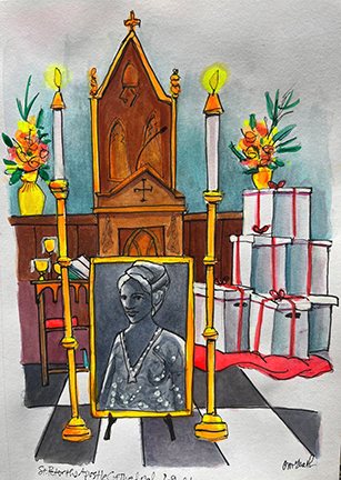 Now McGrath has 47 paintings inspired by Bowman that have been packaged into boxes and sent to Rome for review to advance her cause for canonization.