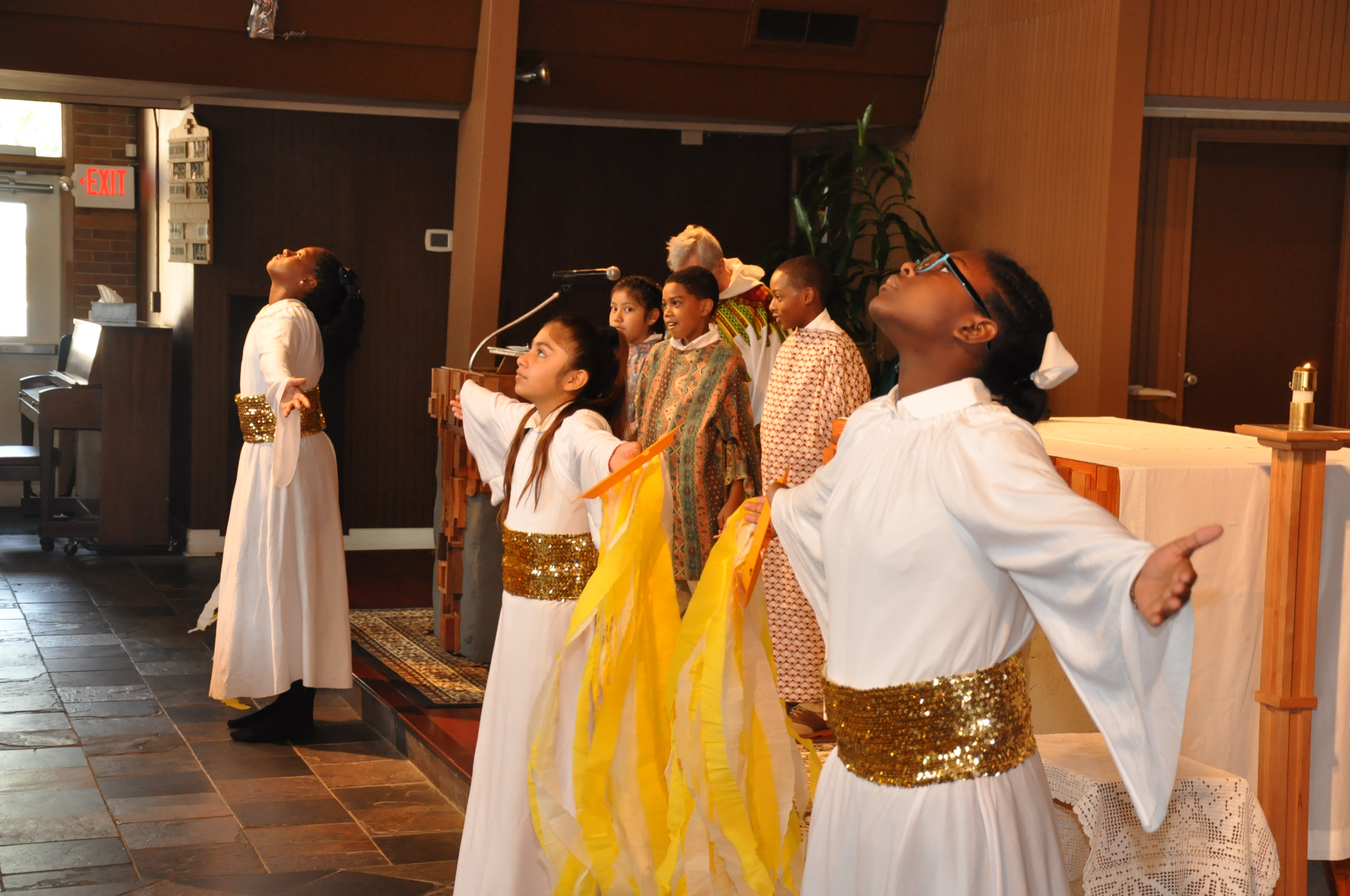 The celebration started with Mass, but included dancers from Tupelo St. James Parish who came to share a traditional Aztec drama- dance. “Los Matachines,” usually dance in honor of Our Lady of Guadalupe. The dance represents the fight of good versus evil. At the end good is the winner.