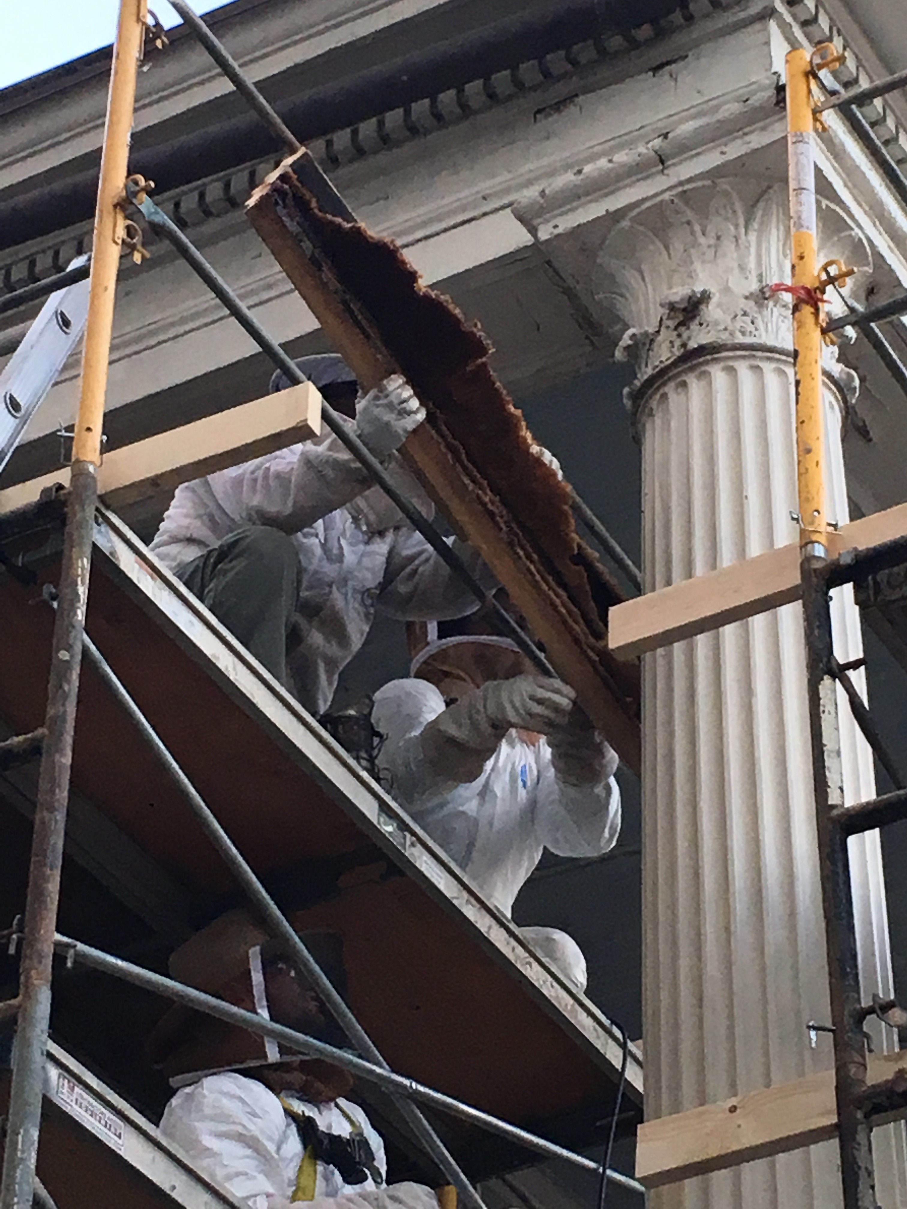 Traci Avalon, office manager for the rectory, said she has known the bees had a hive in the column for a decade, but since they didn’t seem to bother anyone and she knows bees are endangered, she left them alone. When it came time to renovate, she included bee removal in the bid process. “I told them I did not want the bees destroyed. I know some beekeepers and I knew they can be moved,” she said.