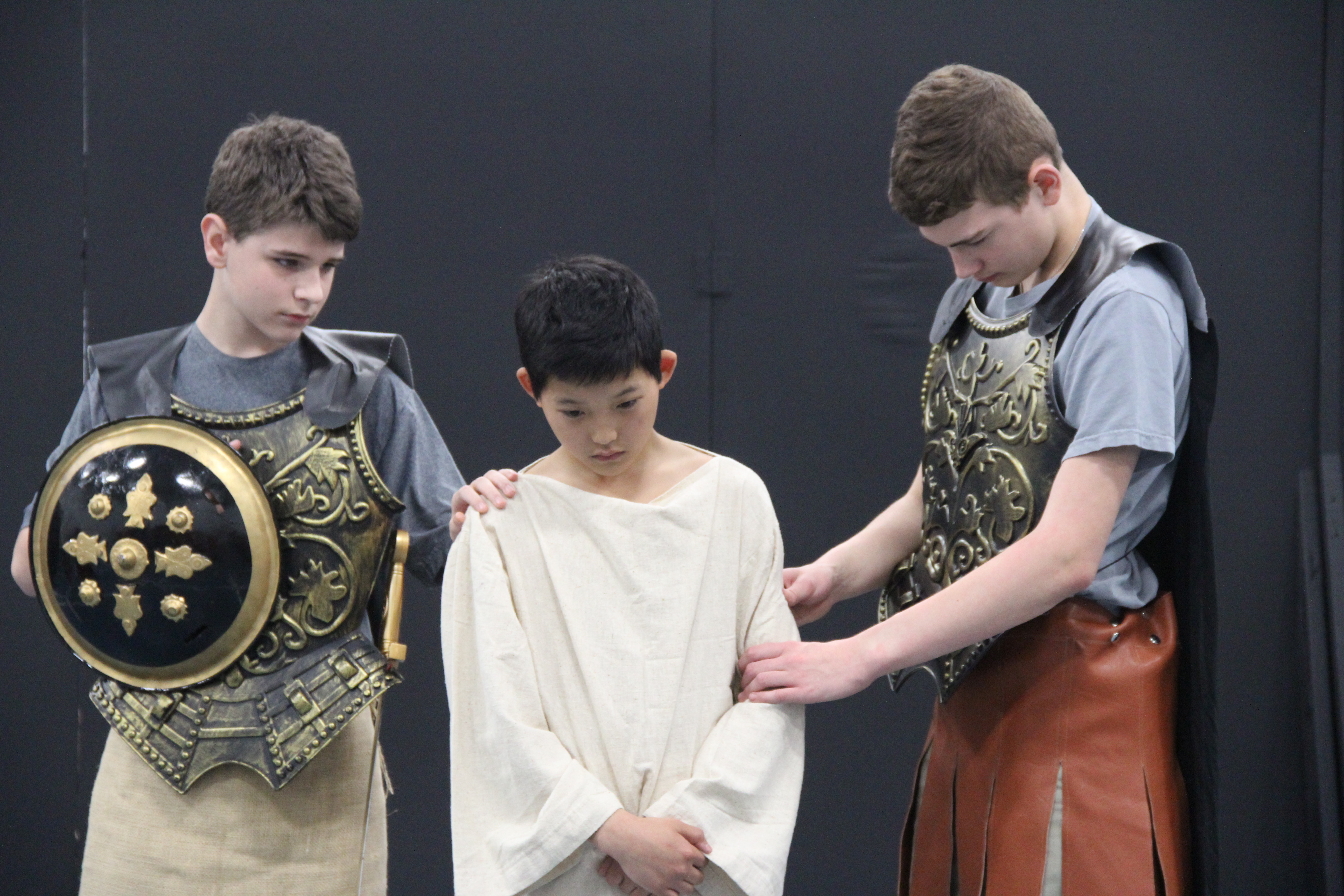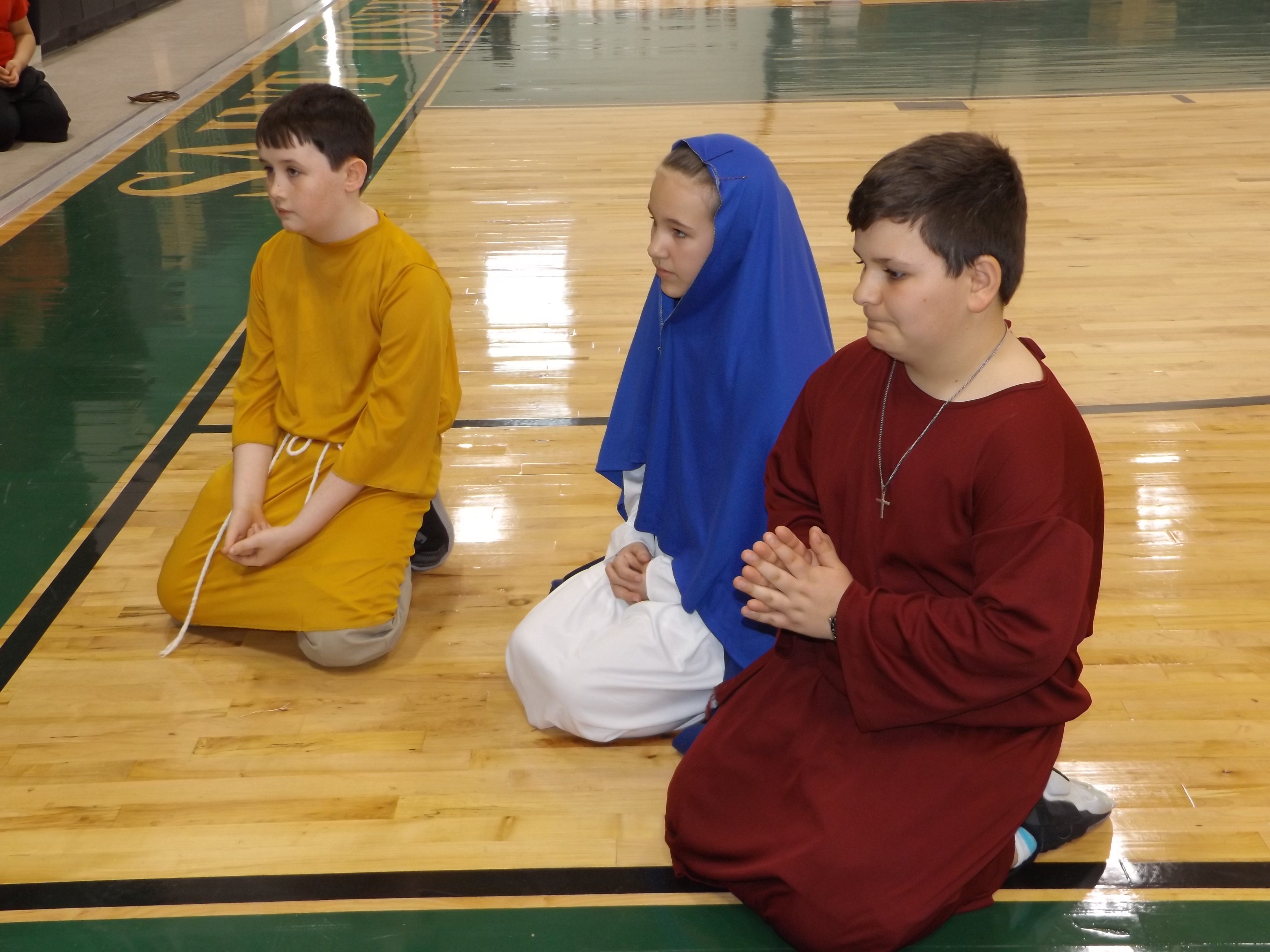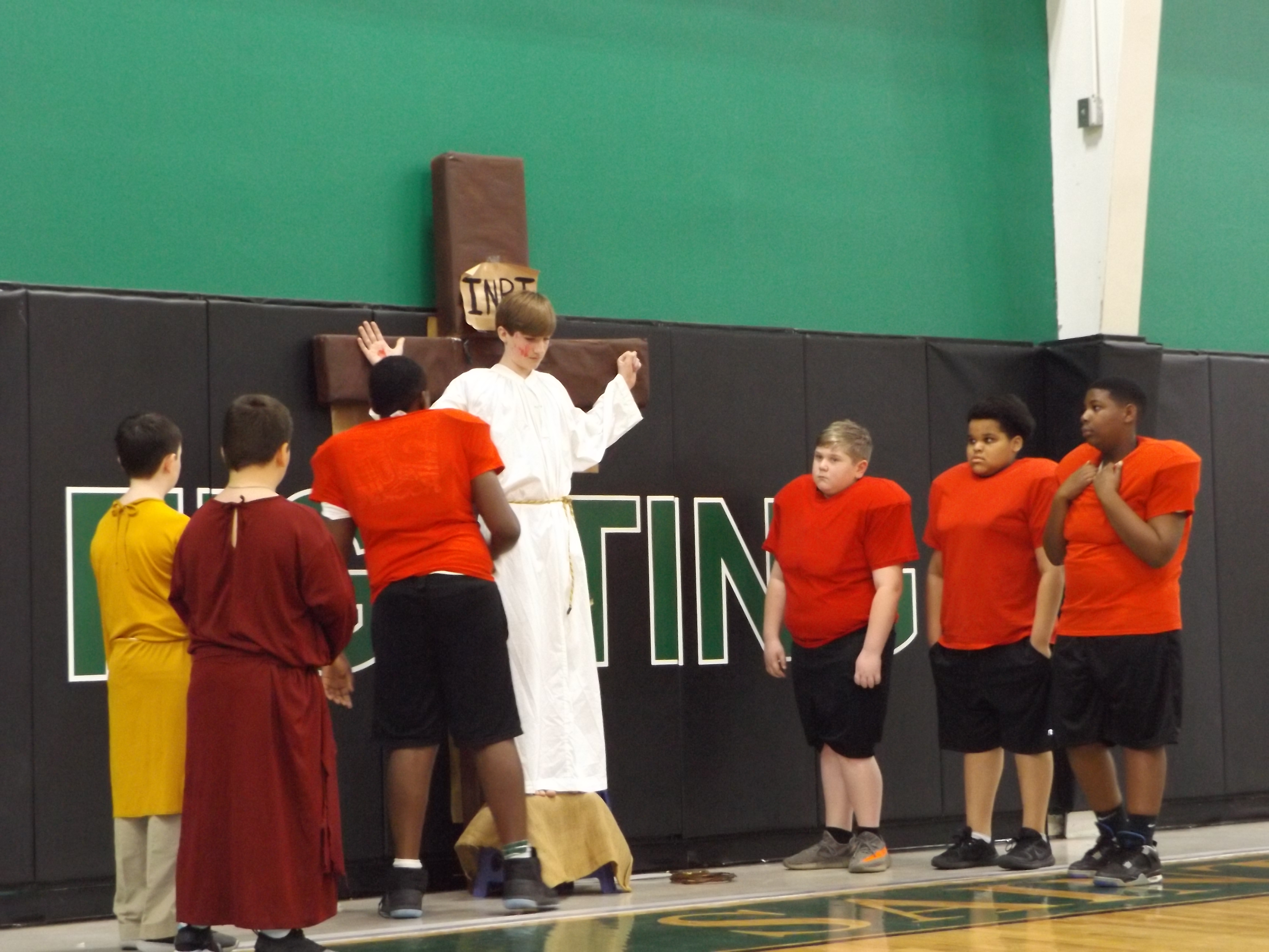 MERIDIAN – Pilate questions Jesus as St. Patrick School first graders, performed a live Stations of the Cross Wednesday, March 28, for the school. (Photo by Mary Yarger)