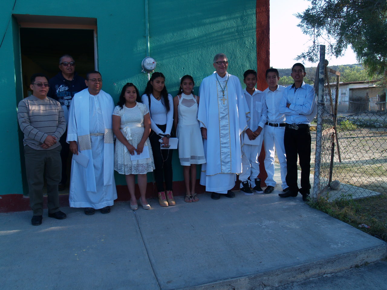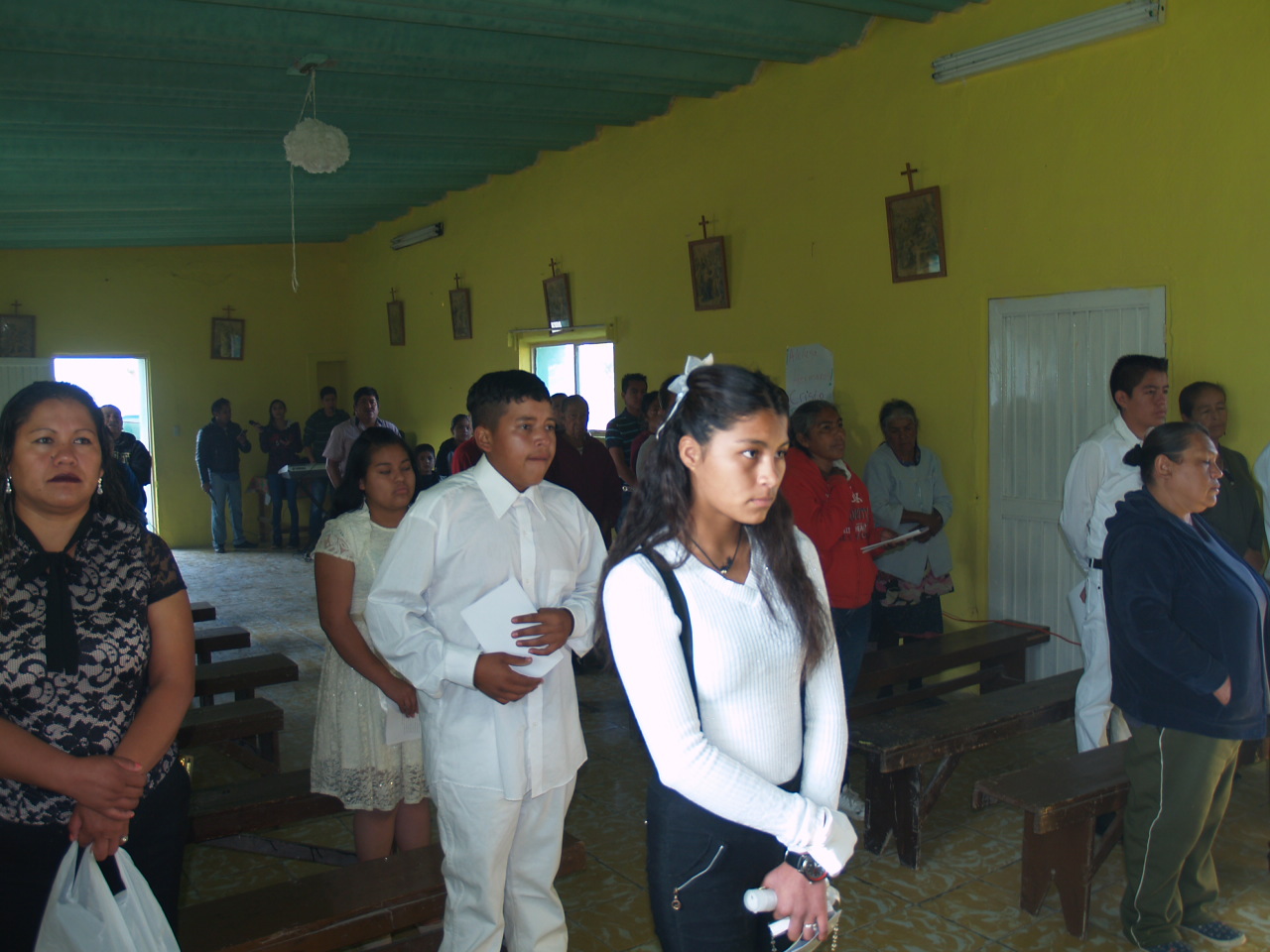 The following morning (Friday), we were on the road at 7 a.m. to visit the ranchos (mountain villages), accompanied by five altar servers and three musicians. Our first stop was the village of San Francisco to celebrate the sacrament of Confirmation. Seldom, if ever, do the mountain villages see a bishop. Under normal circumstances, a villager must travel to the cathedral church for confirmation, bringing family and sponsors with him/her and maybe stay overnight. Therefore, bishop’s visit is a great savings for the families. After confirmation, we all shared a big breakfast with the villagers and newly confirmed.