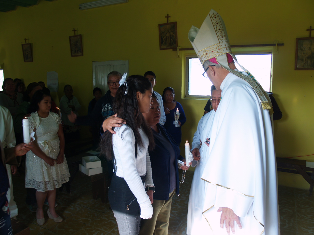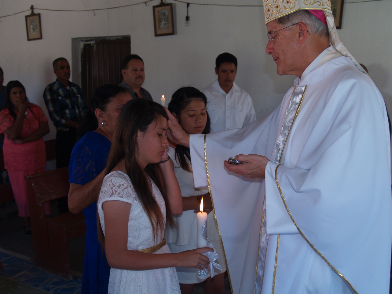 After Mass, we travelled on to Presa San Pedro for the celebration of Confirmation for villagers from La Rosa, La Purisima and La Ventura. Again, it was a great festival of faith. Before leaving, Bishop Kopacz made a home visit to a lady who suffered from cerebral palsy. She was now 24 years of age and weighed no more than 45 pounds. She had never spoken and only made guttural sounds. The family was very appreciative of the bishop’s visit.