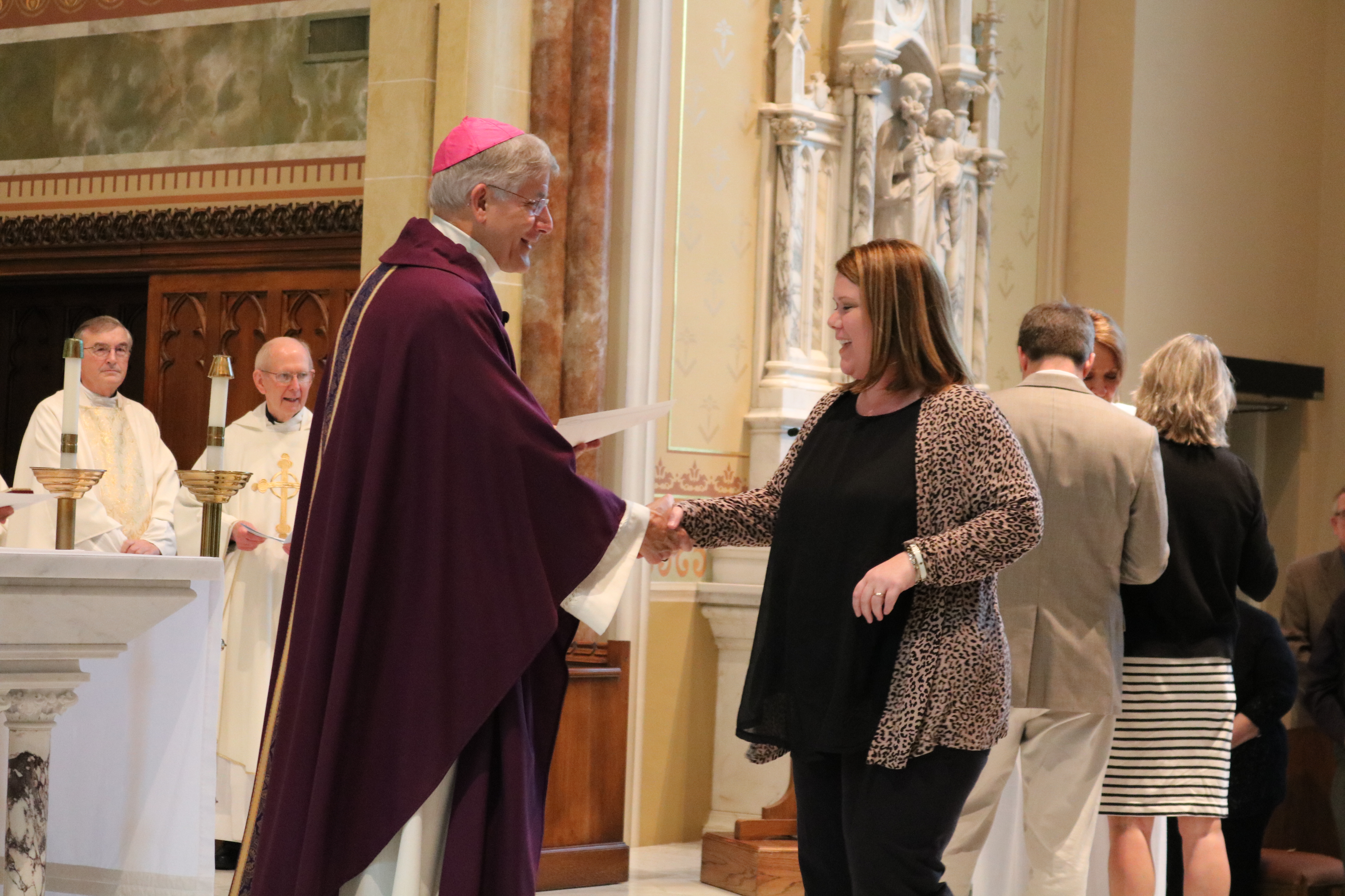 JACKSON – Nineteen adults and nine young people received the Bishop John Joseph Chanche Award for service on Saturday, Feb. 24, in the Cathedral of St. Peter the Apostle. Bishop Joseph Kopacz distributed the awards during a special Mass. The Chanche medals, named for the first bishop of the diocese, honor those who give of themselves to their parish or faith community. The awards are presented on the weekend closest to the Feast of the Chair of St. Peter, the patronal feast for the Diocese of Jackson.