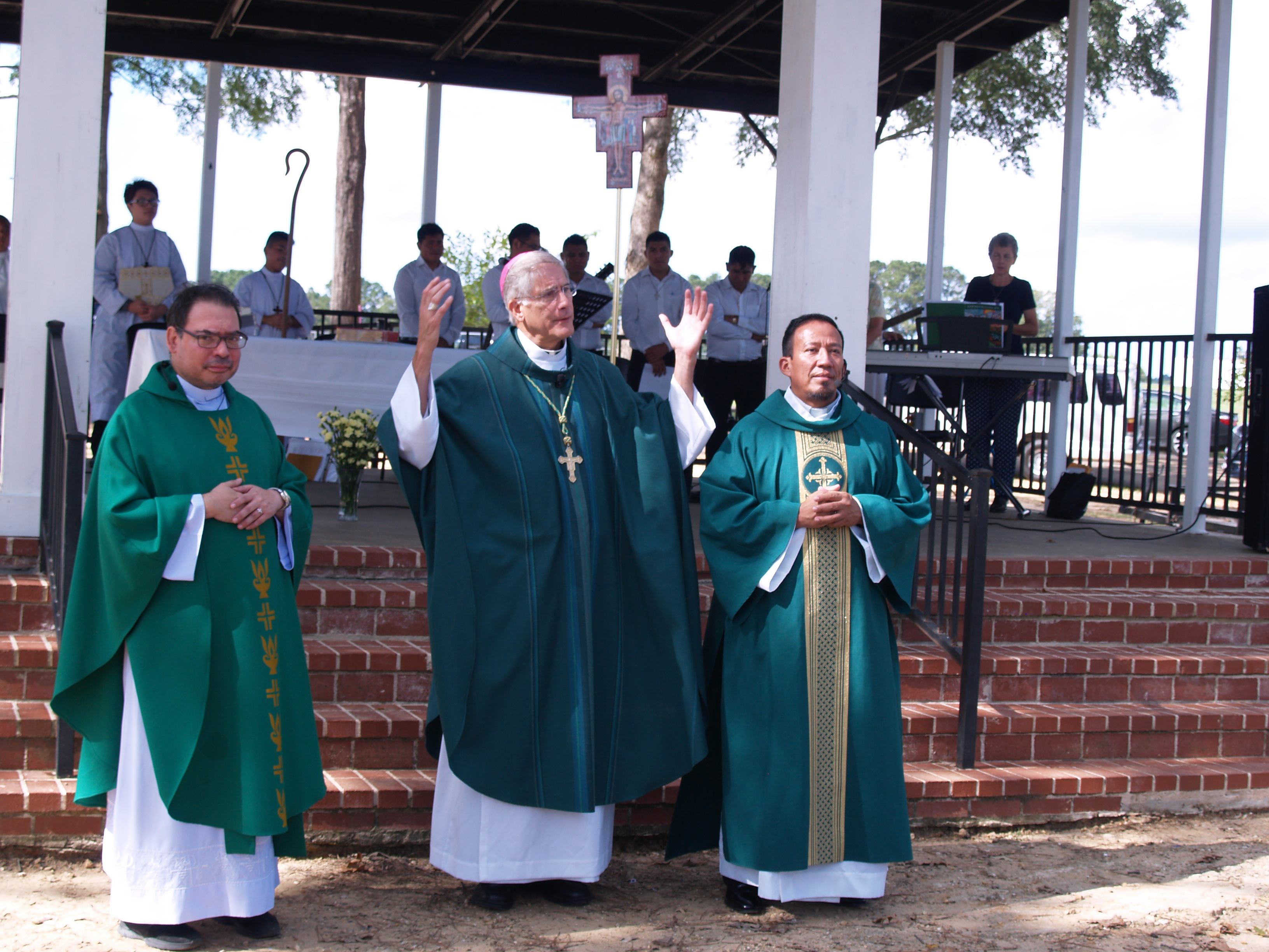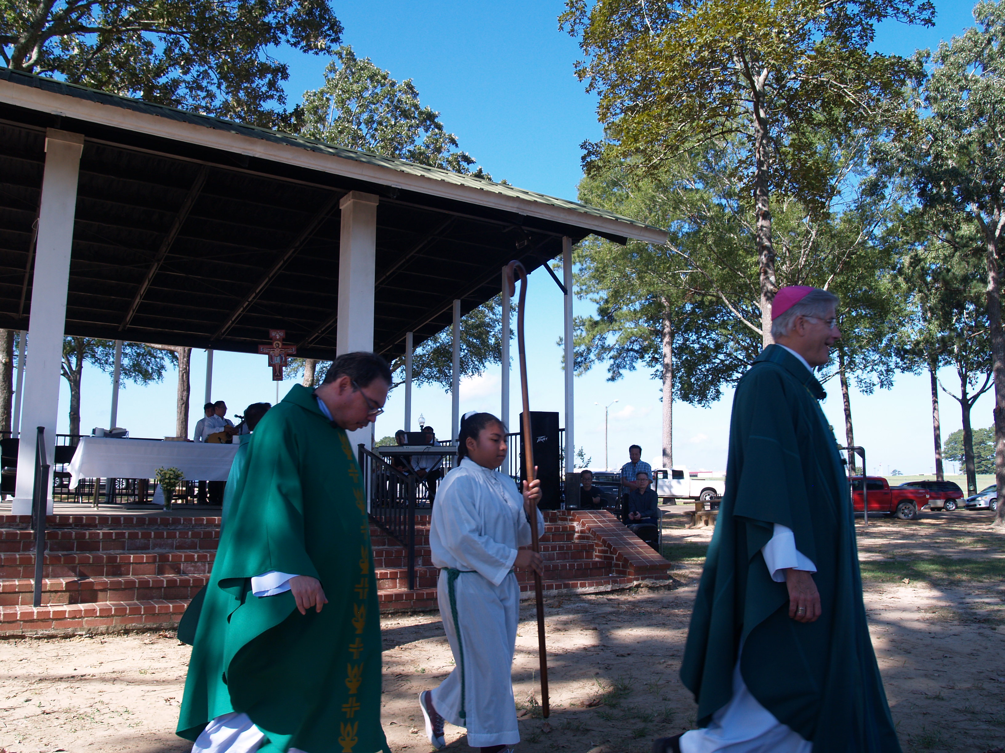 NEW ALBANY – A scrim of tall pines shaded the altar, and even in the late summer heat, a cool, long shadow provided relief for Mass, during which the members of St. Francis of Assisi Parish honored their patron saint.