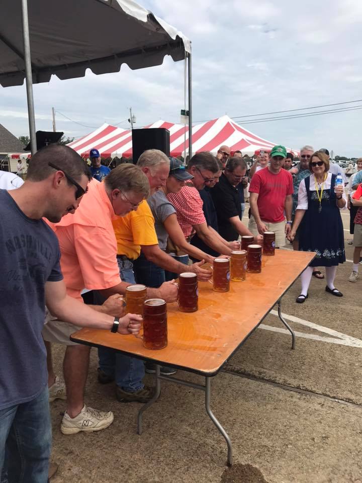 Prior to the festival, families gather to can sauerkraut using a traditional recipie. For days before they prepare sausages, bratwurst, desserts and other German delicacies to share with their neighbors. This year, participants could prove their braun in a beer stein-holding competition. Children can enjoy games and the music during the daylong event.