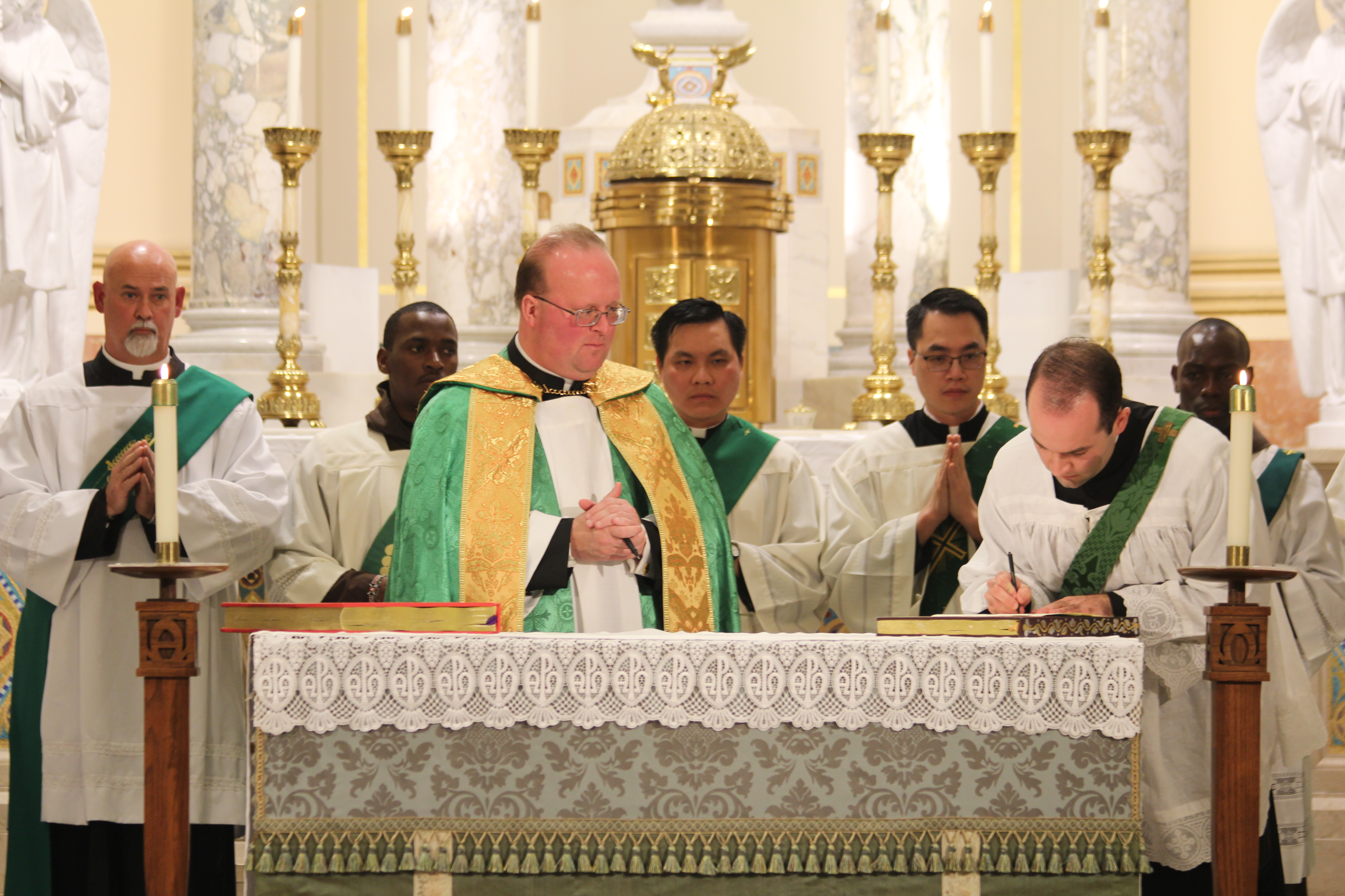 NEW ORLEANS – Deacon Aaron Williams and Deacon Nick Adam sign their Professions of Faith and Oaths of Fidelity as required by Canon Law in the chapel at Notre Dame Seminary on Sunday, Feb. 4 along with other members of their seminary class. Seminary Rector Father James Wehner witnessed the oaths. This is one of the last steps men take before priestly ordination. See below for details on their ordinations. (Photos courtesy of Notre Dame Seminary)