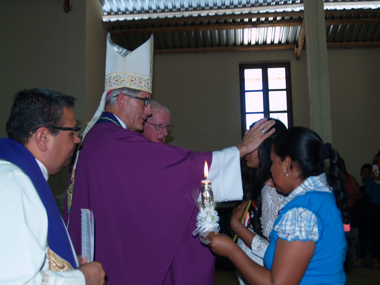 After the blessing, Bishop Kopacz was offered a kid goat as a gift. I explained to the kind lady making the offer we would only be in the country five days and were forbidden to bring a goat back with us to the U.S. Instead she offered Bishop Kopacz a package of tortillas which he graciously accepted.