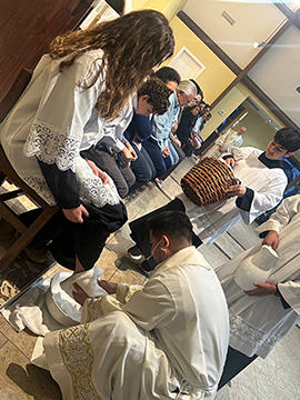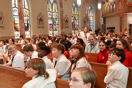 COLUMBUS – Annunciation student Weston Thomas tries to catch a snowflake during a surprise snowfall in Columbus on March 16. (Photo by April Moore)NATCHEZ – Cathedral first-grade students Caroline Hall and Connor Ryan paint rainbows with a pot of gold during an art lesson with local artist Kate Lee Laird. (Photo by Brandi Boles)JACKSON – Students in Ms. Riley’s PreK3 class participate in an airport-themed lesson, claiming tickets, passing through “TSA” and boarding a classroom “flight” as part of a transportation unit. (Photo by Celeste Saucier)SOUTHAVEN – Sacred Heart PK4 student Evo smiles while planting a flower in the school garden. (Photo by Sister Margaret Sue Broker)MADISON – Noah Harris, a seventh-grader at St. Joseph School, prepares the ground for new plants. Harris and other Bruin tennis players spent part of April 4 sprucing up flower beds on campus.St. Joseph student journalists pose with awards earned at the Mississippi Scholastic Press Association spring 2026 convention at the University of Mississippi. The group won 26 awards, including high school Newscast of the Year for “Bruin News Now” and middle school Newscast of the Year for “JV Bruin News Now.” Back row (l-r): John Harris, Davis Hammond, Mary Alice Foster, Ellery Skipper and Addison Olier; fourth row: Liv Hager, Ashleigh Mason, Alex Hood, Branson Payne and Robert Ostrenga; third row: Calese White, McKenzie Cummings and Noah Sanders; second row: Jason Buckley, Reid Hager and Sawyer Helms; front row: Audrey Young and Thierry Freeman. (Photos by Terry Cassreino)CLINTON – Liam Gonzalez-Miranda and Adam Martino Jr. collect eggs with Father Lincoln Dall during the Holy Savior Easter egg hunt on March 29. (Photo by Jessica Martino)PEARL – Father César Sánchez washes the feet of parishioners during the Holy Thursday Mass of the Lord’s Supper at St. Jude on April 2. Altar server Olinsser Villafranca collects towels. (Photo by Tereza Ma)JACKSON – St. Richard School second-graders Marilee Nelson, Winn Nicholas and Leland Parkinson participate in the school’s “Living Stations,” a long-standing Holy Week tradition. (Photo by Celeste Saucier)YAZOO CITY – Children at St. Mary’s Catholic Church learn to make crosses from palms distributed at Palm Sunday Mass. (Photo by Babs McMaster)JACKSON – Bishop Joseph R. Kopacz speaks with E’Mori King, Morghan Pryor and Keelan King – students from Holy Family School in Holly Springs attending Chrism Mass at the Cathedral of St. Peter the Apostle.Chancellor and archivist Mary Woodward speaks to sixth-grade students from Catholic schools across the Diocese of Jackson about the history of the diocese and the Cathedral of St. Peter the Apostle following the Chrism Mass on March 31.Students from Annunciation Catholic School gather before attending the Chrism Mass on March 31 and greet former principal Joni House. (Photos by Tereza Ma)