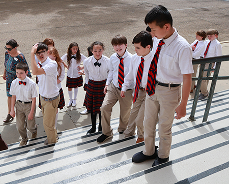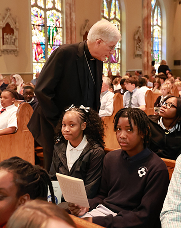 MADISON – Older toddlers at the Early Learning Center at St. Francis of Assisi in Madison sit together during a classroom activity. (Photo courtesy of school)MADISON – Seniors McKenzie Cummings and Thierry Freeman, both students at St. Joseph Catholic School in Madison, anchor the award-winning, student-produced weekly newscast Bruin News Now on location in Nashville. Junior Jason Buckley mans the camera. Cummings, Freeman and Buckley were among a group of St. Joseph journalism students who attended the national high school journalism convention sponsored by the Journalism Education Association and the National Scholastic Press Association Nov. 13–16. (Photo courtesy of school)MERIDIAN – Eric Yoeun, left, and Maura Lane Owen, first-grade students at St. Patrick School, practice the Mass on Nov. 11, 2025. (Photo courtesy of school)VICKSBURG – St. Al Senior Briley Lott reads with her kindergarten buddy, Rykira Bradford, during a fall buddies gathering. (Photo courtesy of school)NATCHEZ – Senior Grayson Gay and first-grade student Noah Loyed play bingo together at Cathedral School. (Photo courtesy of school)CLARKSDALE – First-grade students at St. Elizabeth School pose with members of the Clarksdale Fire Department during a Blue Mass on Sept. 11, offering prayers for first responders and all who help keep the community safe. (Photo courtesy of school)GREENVILLE – St. Joseph High School students John Paul Rogers, Jacob Powers, Santo Borganelli and Jada Hicks take notes during a music appreciation class. (Photo courtesy of school)SOUTHAVEN – Students at Sacred Heart School participate in the opening procession for the celebration of Mass, with Ben Baskin serving as cross bearer alongside altar servers Michael Lickteig, left, and Gustavo Bermudez. (Photo courtesy of school)HOLLY SPRINGS – Holy Family School students engage in hands-on coding activities as part of a classroom lesson. (Photo courtesy of school)MADISON – St. Anthony School fifth-grade students Josephine Klar and Patrick Harris conduct a chlorophyll experiment during a science class in Mrs. Moorehead’s laboratory on Sept. 11. This moment reflects school community because curiosity, collaboration and inquiry are at the heart of St. Anthony’s learning and STEM centered curriculum. (Photo courtesy of school)JACKSON – Charles Speech walks with students at Sister Thea Bowman Catholic School, including Haniel and Hanry Chia, Ja’Kayla Davis, Eliel Cattenhead and Zachary Gordon. (Photo courtesy of school)JACKSON – Students at St. Richard Catholic School present a whole-school Advent program directed by Andrew Ladd on Dec. 19. (Photo courtesy of school)COLUMBUS – James Thomas, a student at Annunciation School, looks through a microscope during an ACS STREAM Day activity. Students rotate through hands-on stations, including examining cheek cells under a microscope. (Photo courtesy of school)