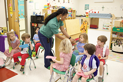 FLOWOOD – Students at St. Paul Early Learning Center listen to award-winning author Cindy Allison Bell, a Madison resident with a bachelor’s degree in elementary education. Bell, a mother of three grown sons and grandmother to twin boys, draws on her Christian background to write about celebrating unconditional love and the people God places in our lives. (Photo by Wendi Murray)