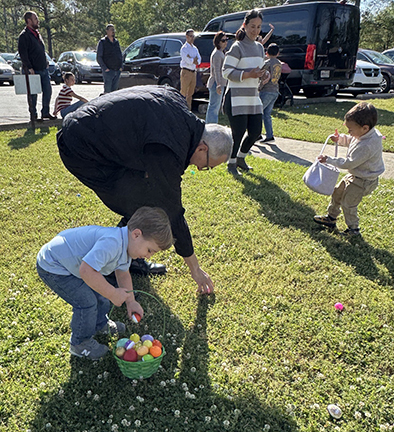 COLUMBUS – After school Mass, Father Jeffrey Waldrep joined first graders Colin Baucom, Jason Hood, Harrison Barranco, Huff Morgan and Luke Thomas for a game of four square at Annunciation Catholic School. (Photo by Jacque Hince)VICKSBURG – On Nov. 6, 2025, joined by Father PJ Curley, Father Mario Solórzano and Father Rusty Vincent celebrated a Spanish Mass at St. Francis Xavier Chapel for the St. Aloysius Spanish II class. Students read, responded and participated in Spanish, with several Spanish I students also taking part. (Photo by Vivian L. Velazquez)VICKSBURG – At the Sisters of Mercy Early Learning Center’s annual Balloon Parade, teachers Alexa Eb and Marisha Davis walk with one-year-old students Millie Moody, Beau Brock, Anderson Parker and Ryland Miller. James Hyland is pictured at right with his mother, Liz Hyland. (Photo by Shannon Bell)JACKSON – During the St. Richard School Veterans Day program, veteran Bob Metzger is pictured with his grandchildren, Oliver and Hadley Metzger, who attend the school. (Photo by Gina Metzger)