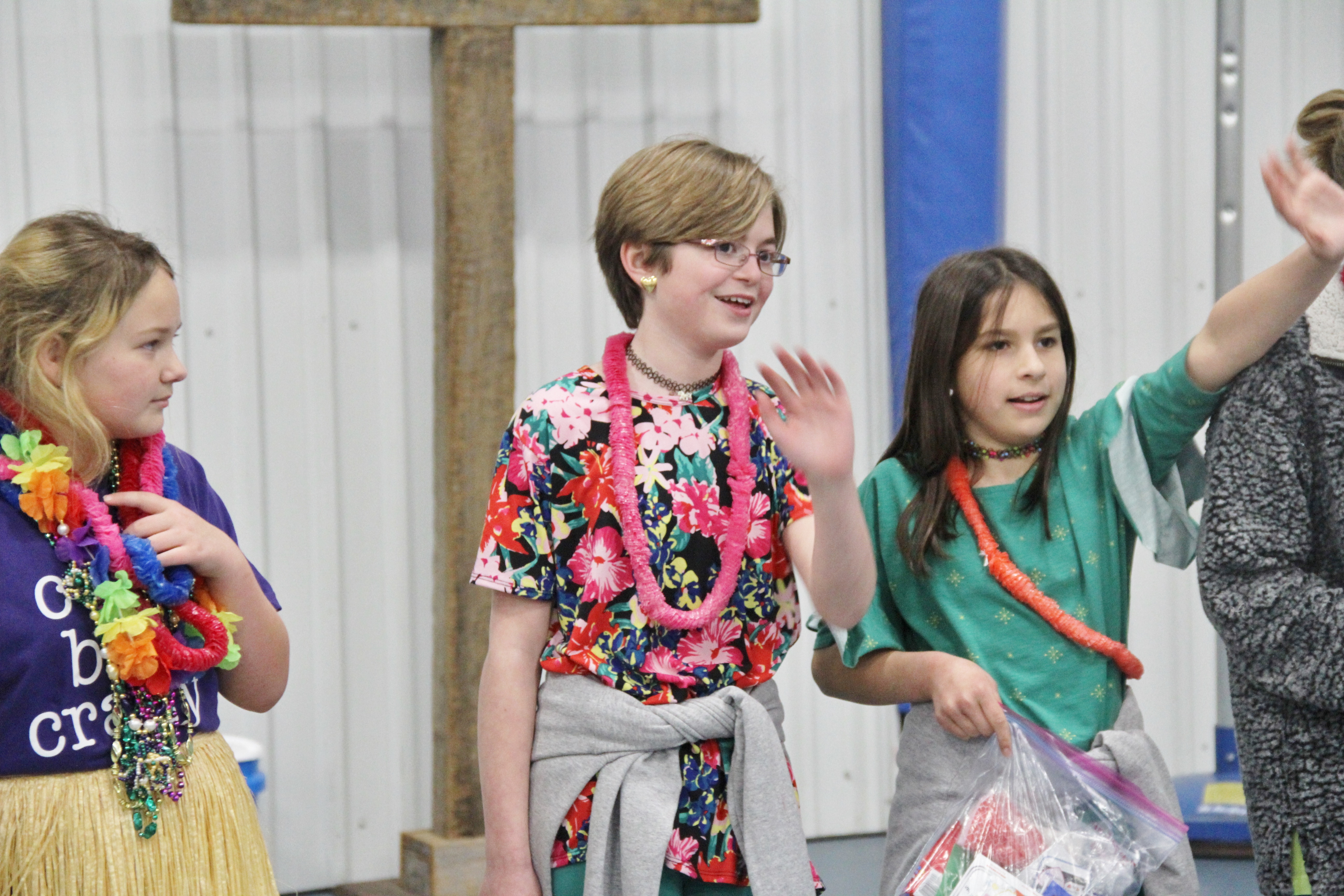 Below: Lily Crum looking into the crowd after tossing a handful of Mardi Gras beads as the “Dukes” float makes its rounds. (Photos by Cara Serio)
