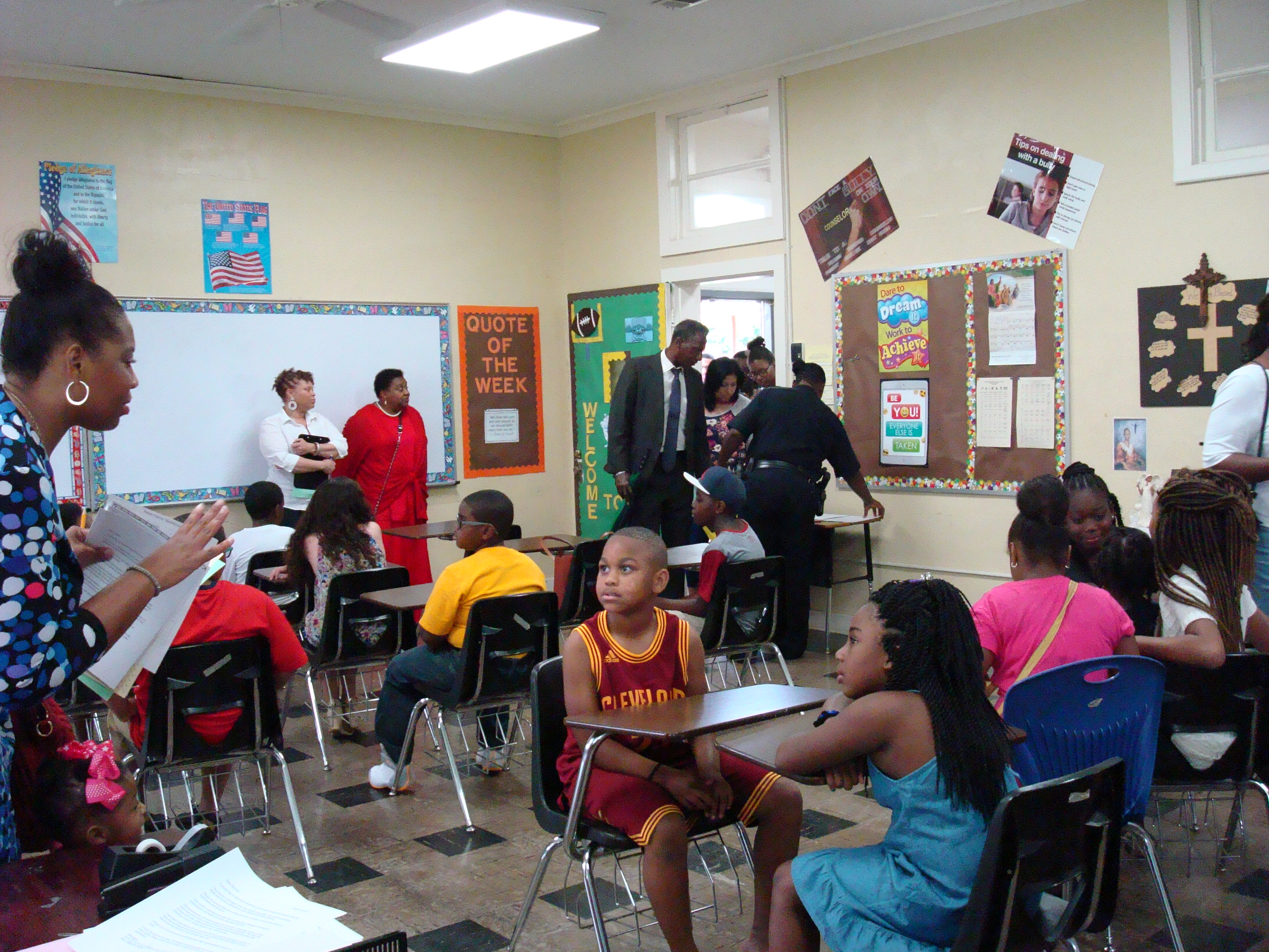 JACKSON – Students and their families meet their teachers and tour the school during Sister Thea Bowman’s back to school afternoon Sunday, August 6. Sister Thea Bowman, situated near Jackson State University, offers music, Spanish and technology as supplements to its excellent curriculum.(Photo by Melissa Smalley)