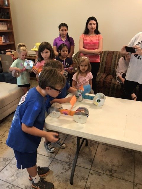 WEST POINT – Immaculate Conception Parish teamed up with the Episcopal Church of the Incarnation to host a vacation Bible School this summer. Youth volunteers from both churches assisted the teacher from Immaculate Conception while Incarnation provided food daily. The theme this year was Maker Fun Factory – Created by God Built for a Purpose. The classes ran from July 10-13 from 5:30-7:30 p.m. and averaged 20 children participating each night with an average of 10 youth helpers. “We opened our VBS to the community so we had children that do not necessarily attend our churches. I feel we had a great turnout and we had awesome helpers and teachers,” wrote Penny Elliott, who submitted the photos. At right, students make their own cars. At left, they blow into the sails to race the cars to demonstrate how God is with us even when we can’t see him just as their breath invisibly moves their cars. (Photos by Penny Elliott)