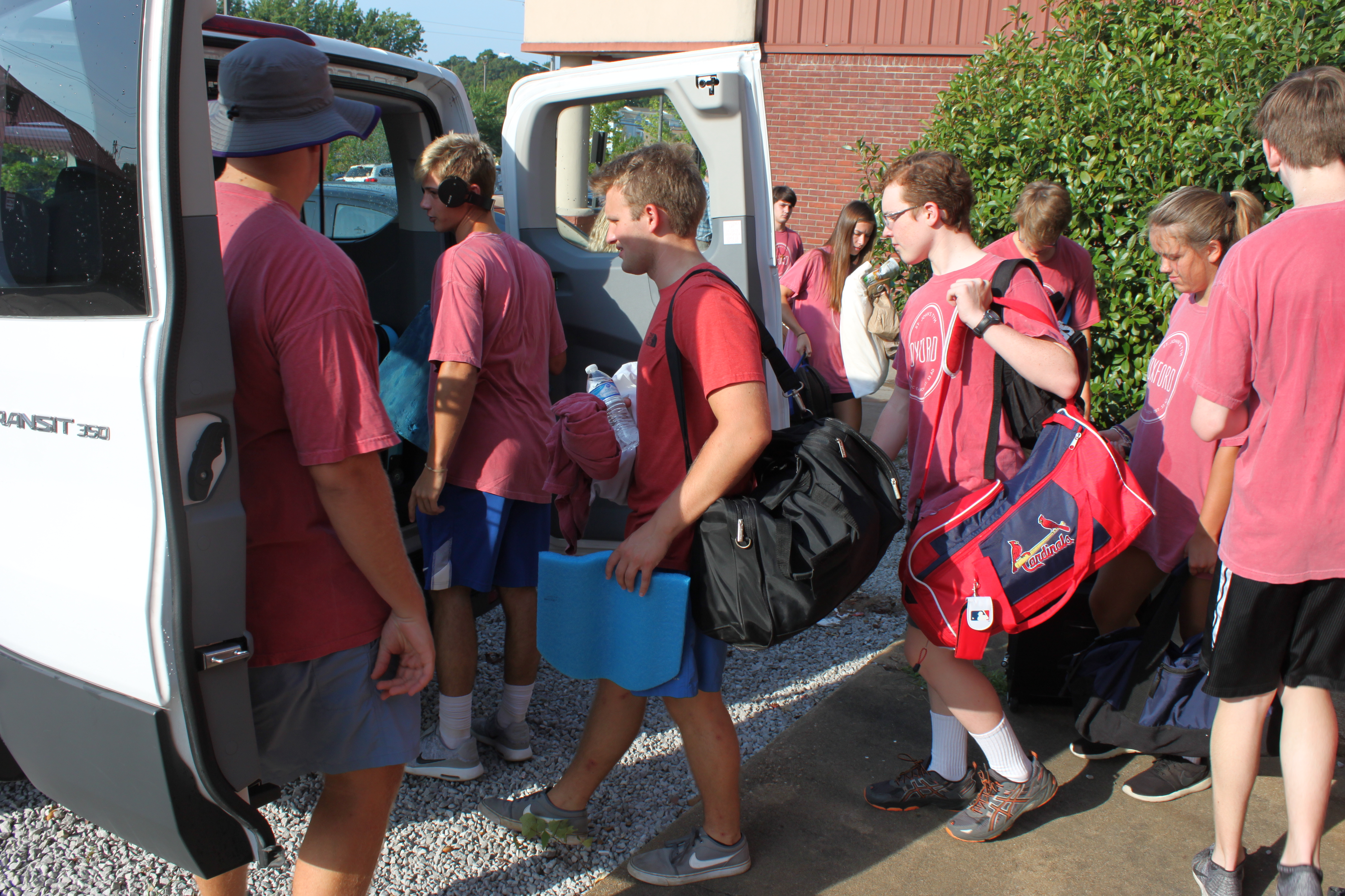 OXFORD – Twenty-seven members of St. John the Evangelist Total Youth Ministry (TYM) and eight chaperones left Oxford early Friday morning, July 21, to attend the annual Mid-American Conference sponsored by the Franciscan University, Steubenville, Ohio. The Mid-American Conference is held at Missouri State University in Springfield, Mo., and is sponsored by the Archdiocese of St. Louis. Teen Conferences are held in 25 locations throughout the United States, and attract some 50,000 teens and young adults annually. The Mid-American Conference, Springfield, is held in two sessions with a combined attendance of some 7,000 teens. This is the eighth year St. John’s TYM has attended. Students earn their expenses by taking part in fund-raising projects at St. John. (Photo by Gene Buglewicz)