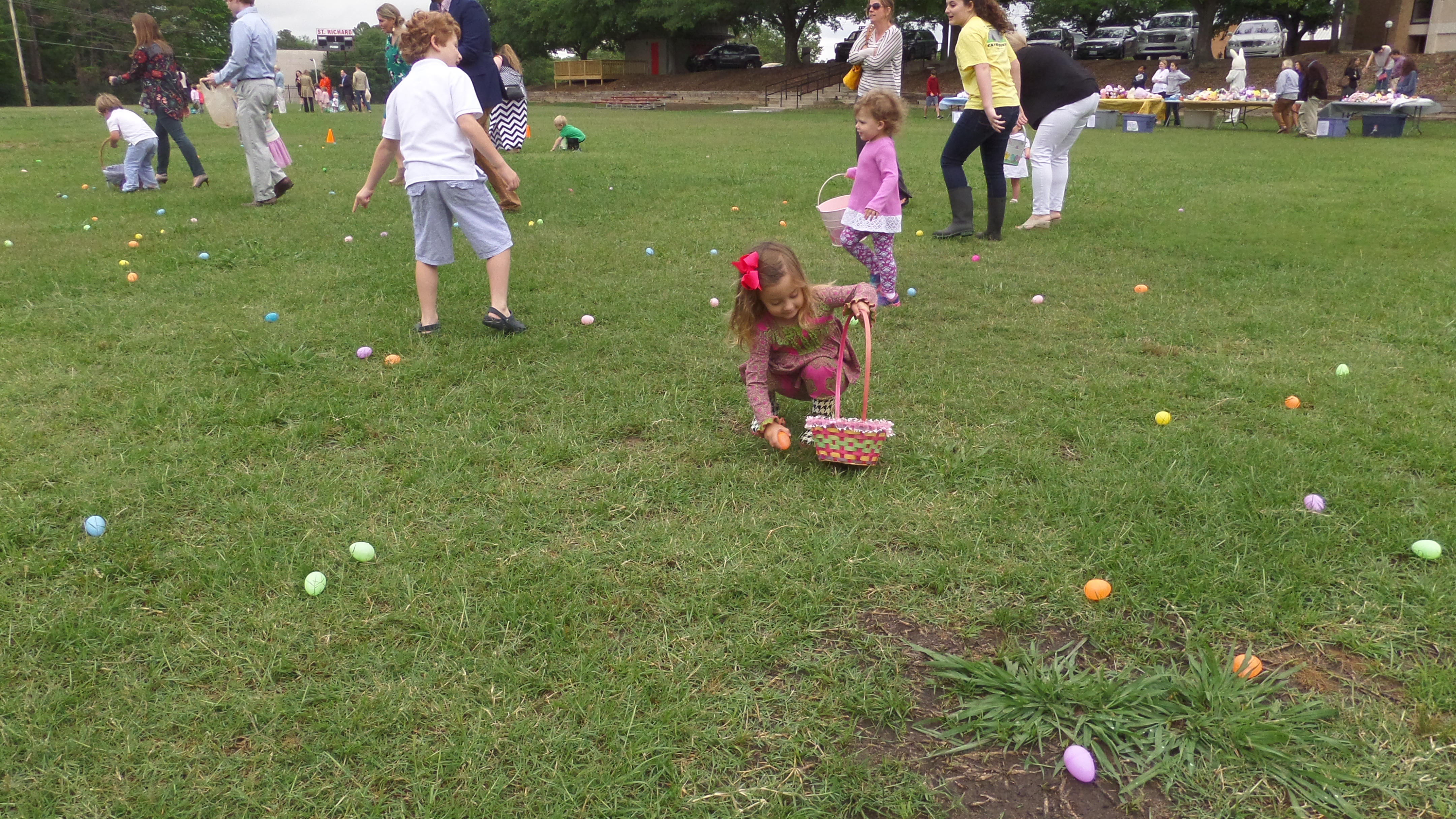 JACKSON – Children from pre-k through sixth grade claim prizes at the St. Richard Egg Hunt on the First Sunday of Easter. The parish’s youth groups organize the activity. (Photos by Maureen Smith)
