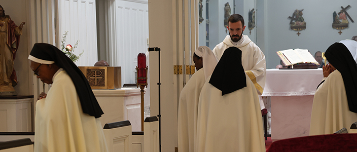 Unlike most of the other churches, the Church of the Visitation is a very modest building. You don’t see any gold or marble. Its wooden walls and oak ceiling are plain and mostly bare. However, on the front wall, behind the altar, there is a painting that depicts the scene of the Visitation, and it was this painting that struck me deeply.