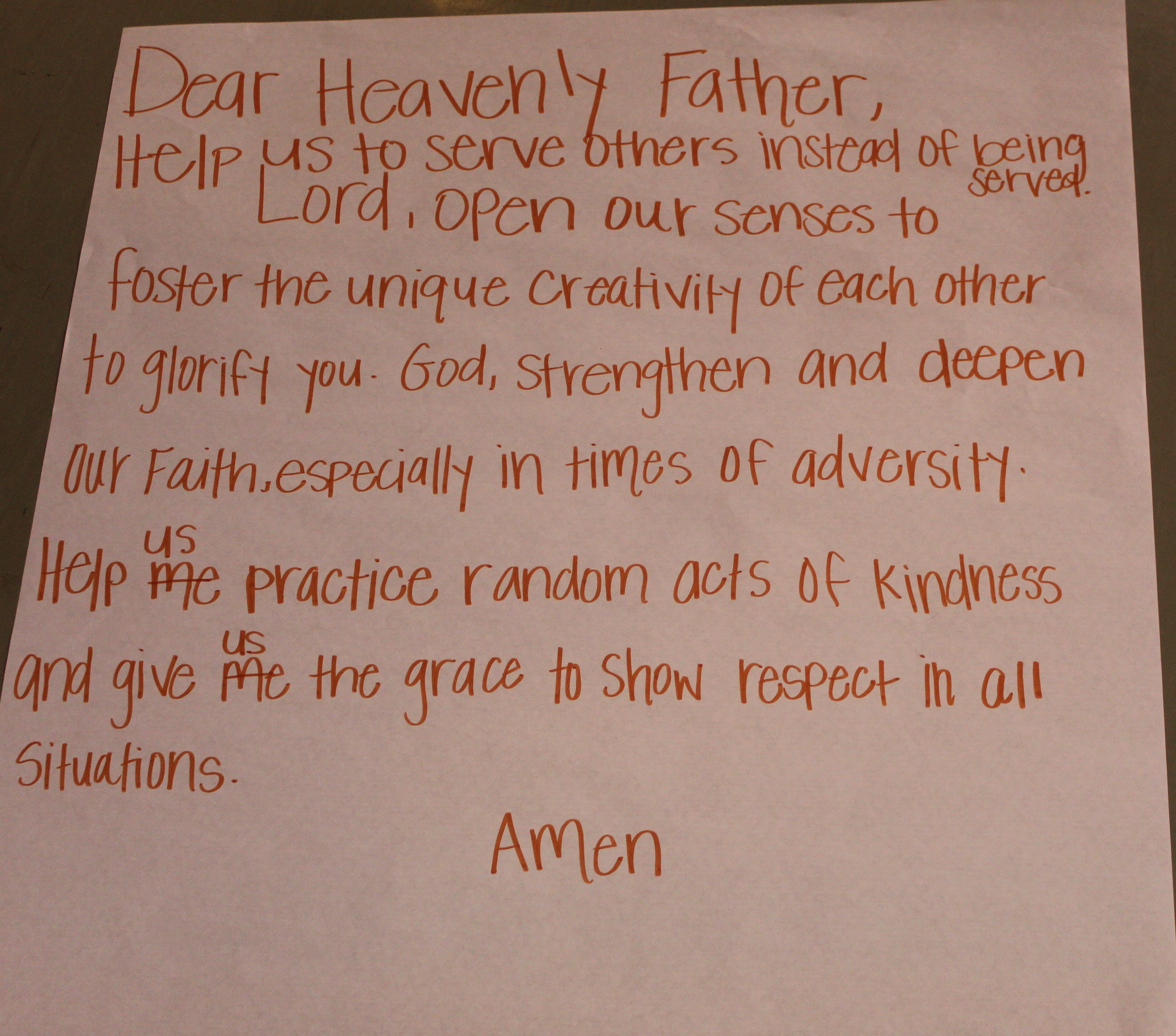 Each school agreed on five values they wanted to emphasize this year. Then, the staff divided into five teams to write a one-sentence prayer about their value. By the end of the day the sentences became a school prayer for the year.