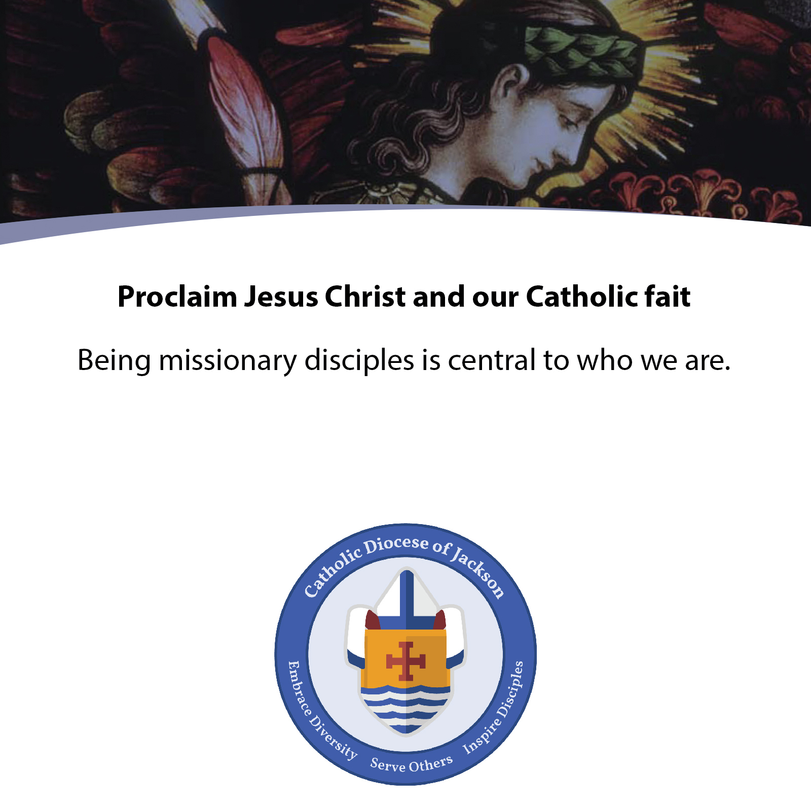 This is the new Vision Statement and logo. The Vision: Embrace Diversity, Serve Others, Inspire Disciples, is wrapped around the logo in a circular way to symbolize that they are all of equal importance. One part of the vision feeds into the others. The Envisioning Team wanted the vision to be broad so it captures what it means to be Catholic in Mississippi, but also wanted it to have some room so each community could embrace what each vision statement means in that specific parish, school or center. This will serve as the new logo for the Diocese of Jackson.