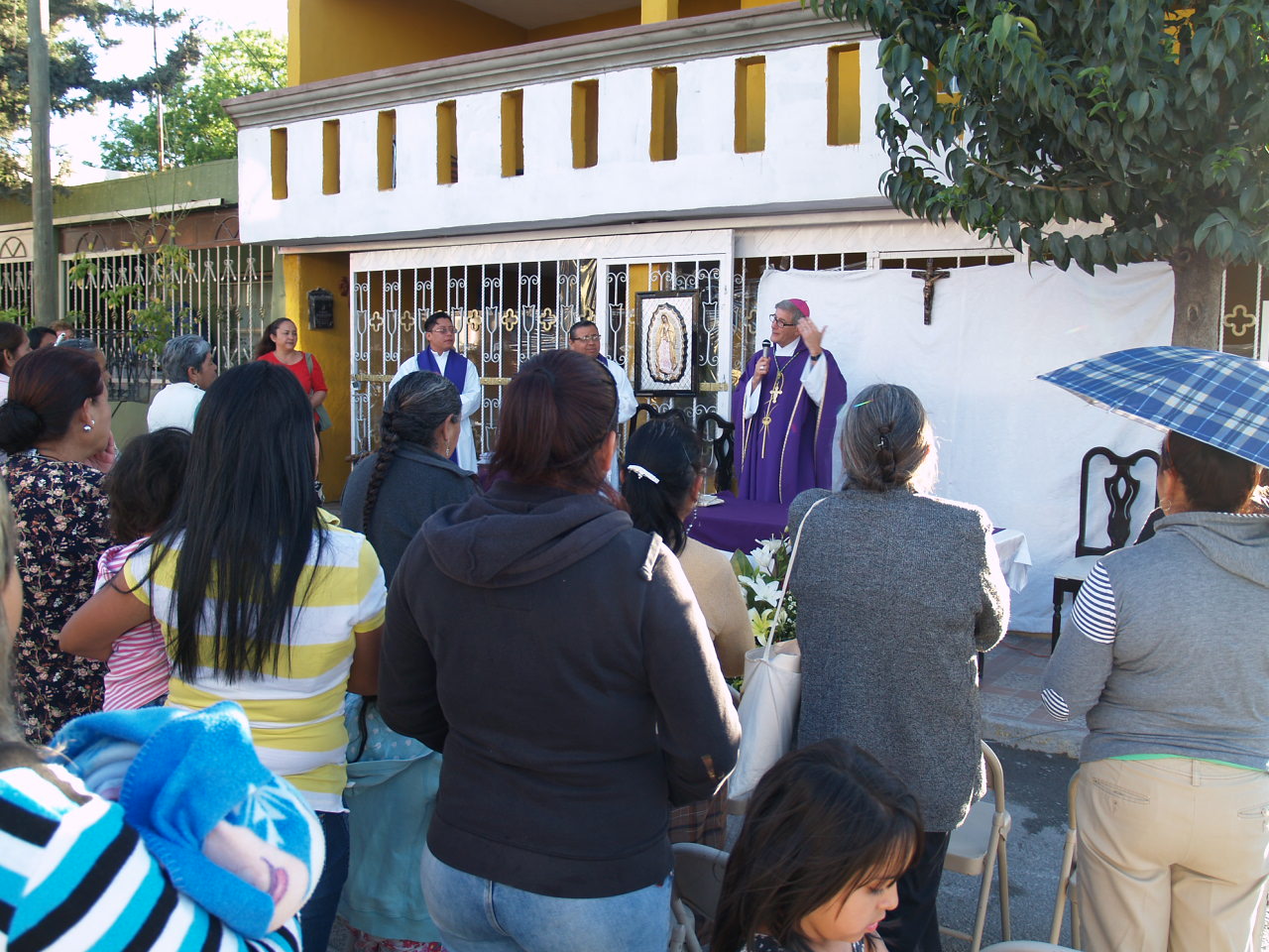 After the blessing, Bishop Kopacz was offered a kid goat as a gift. I explained to the kind lady making the offer we would only be in the country five days and were forbidden to bring a goat back with us to the U.S. Instead she offered Bishop Kopacz a package of tortillas which he graciously accepted.