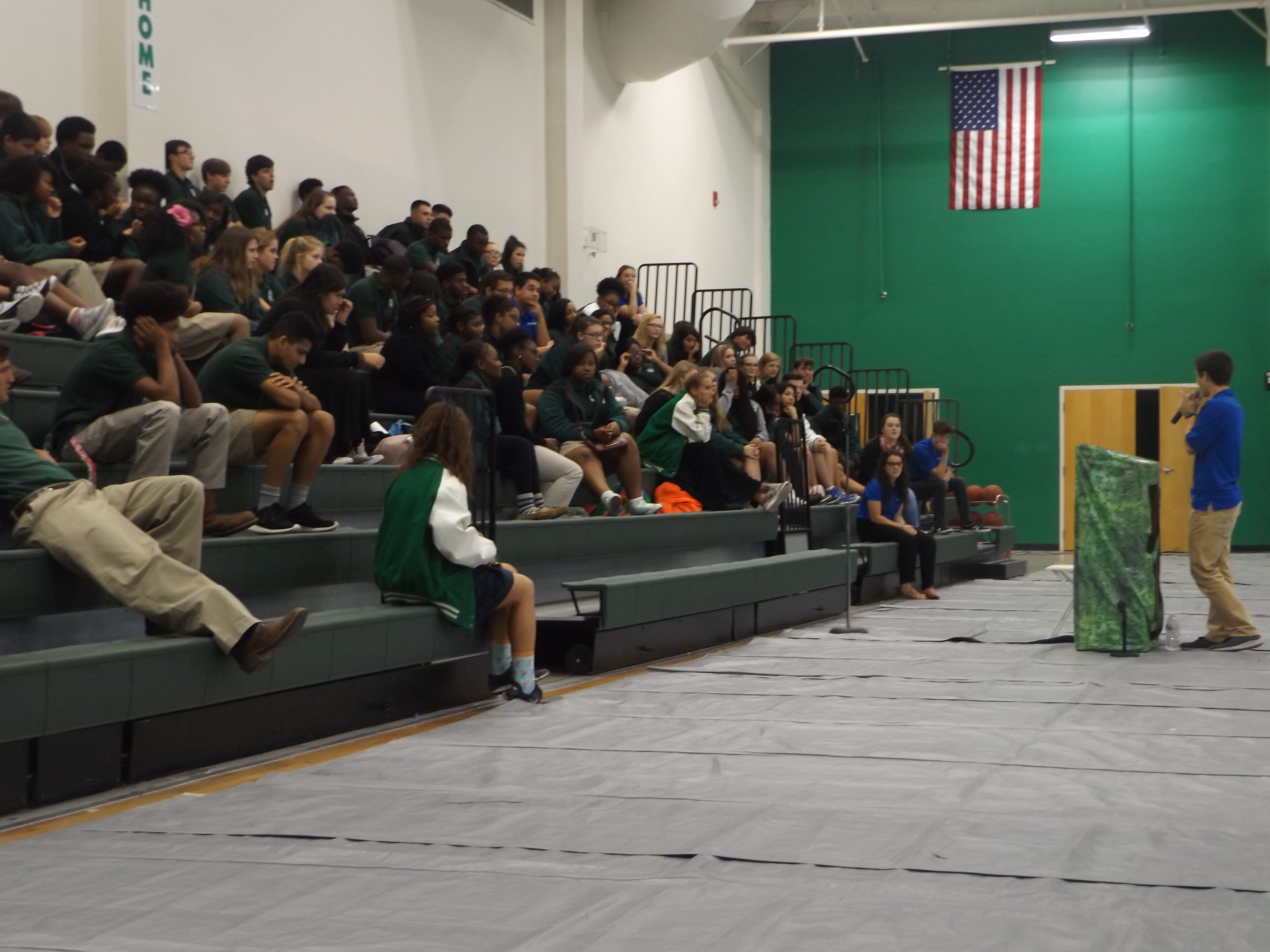 GREENVILLE – Oct 23 – 24, St Joseph School students welcomed the NET Ministries Retreat Team fresh from the middle school retreat. Above, they play a game between presentations. “NET retreats are designed to present youth with the truth of who they are as God’s children and how true joy and meaning in life are found by accepting Christ’s gift of salvation and living as His disciple. Every NET retreat includes an extended time for the youth to pray and be prayed with to make a personal response to God’s invitation.”(Photo by Missi Blackstock)