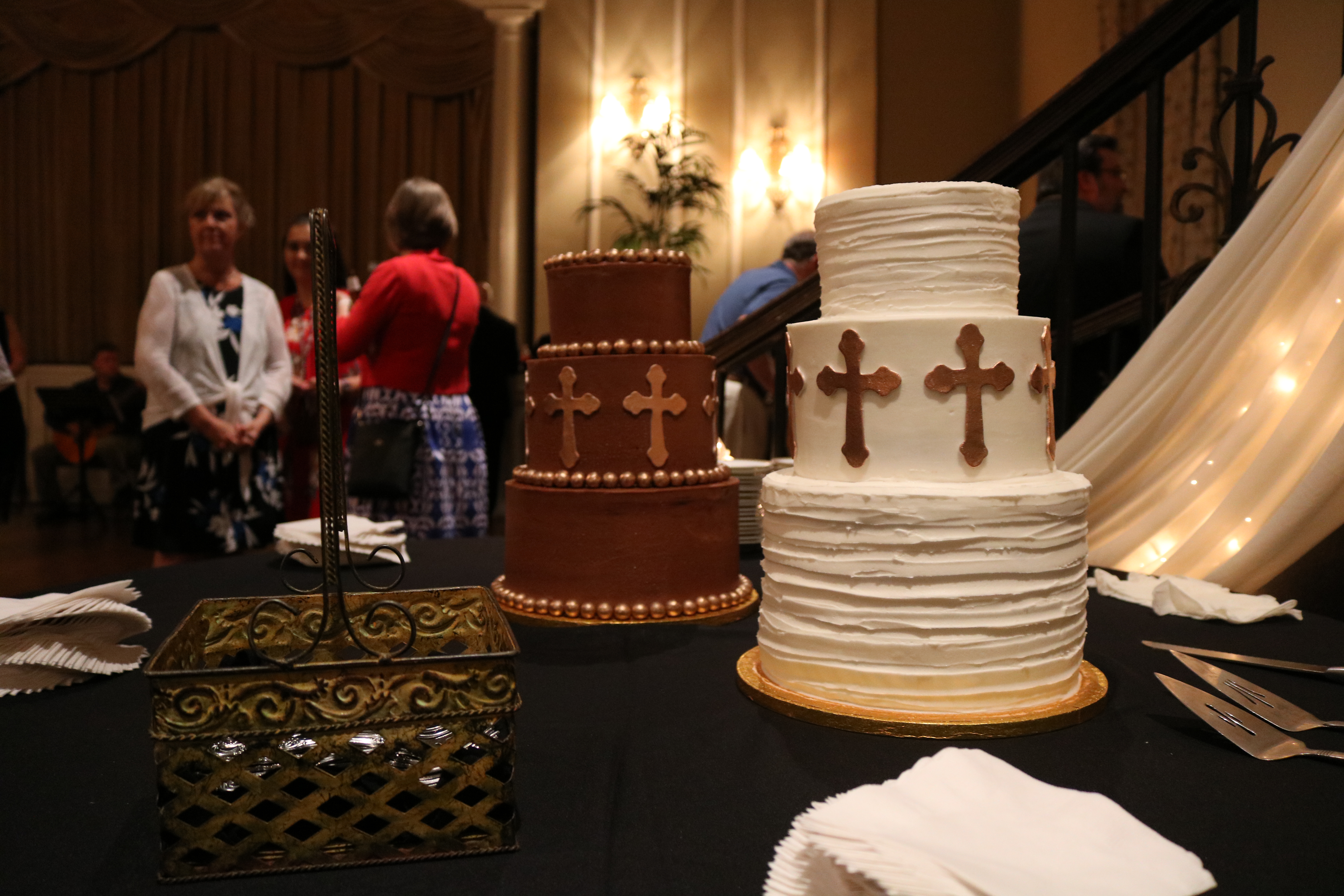 Family, however, played a huge role in the lives of both men. At the end of his first Mass, Father Williams invited his nieces, Ava and Hadley to place a bouquet of flowers at the feet of the statue of Mary. He then presented his mother with the cloth he had used the night before to clean the oil of Chrism off his hands, explaining to the congregation a tradition that calls for Julia Williams to keep the cloth so she can be buried with it wrapped around her own hands — a symbol of thanksgiving for the gift of her son to the church. In fact, Father Williams had a scripture verse embroidered onto it before his ordination so he could present it as a personal gift.