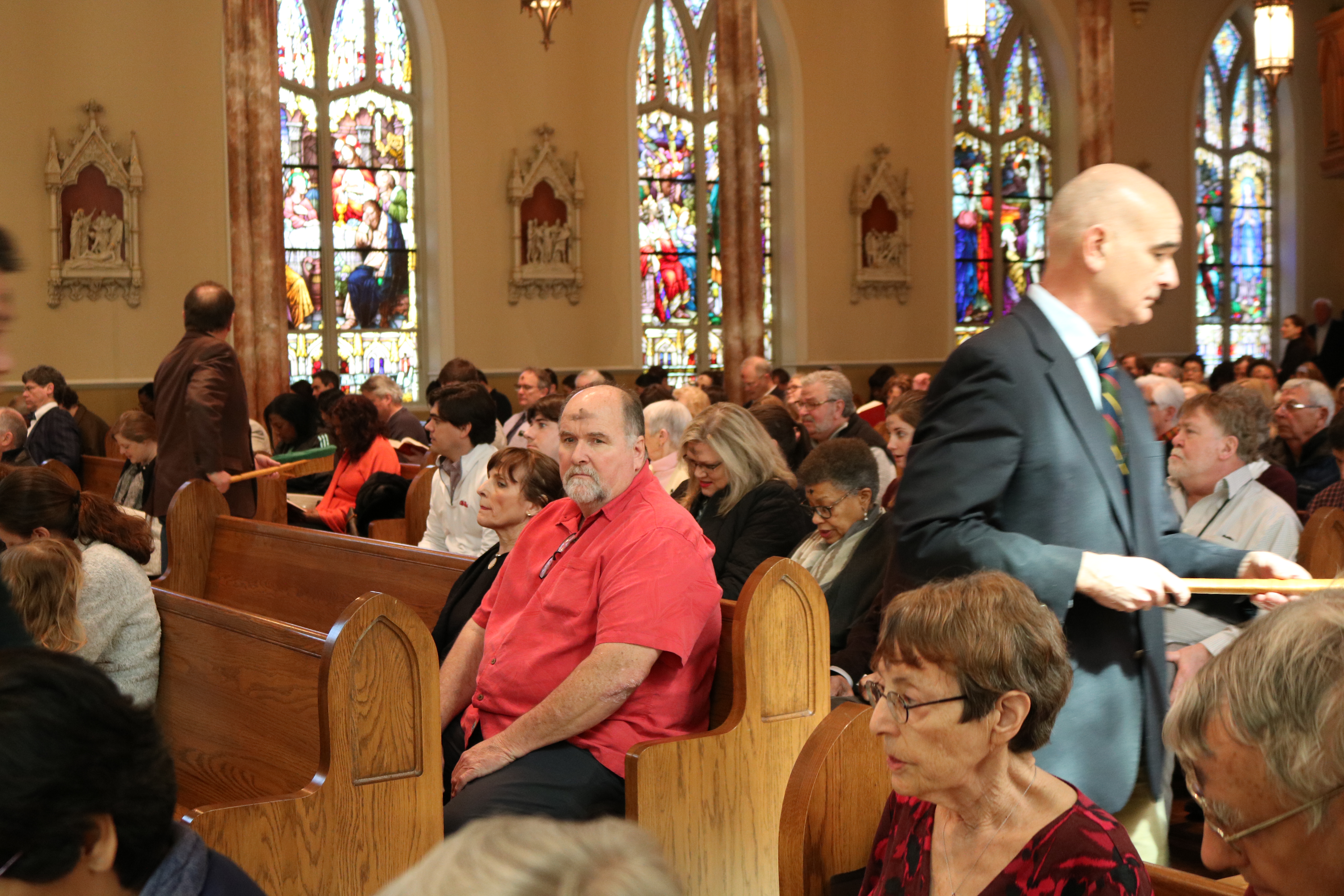 Bishop Joseph Kopacz, celebrated Ash Wednesday Mass at the Cathedral, blessing ashes to mark the forheads of those in the church.