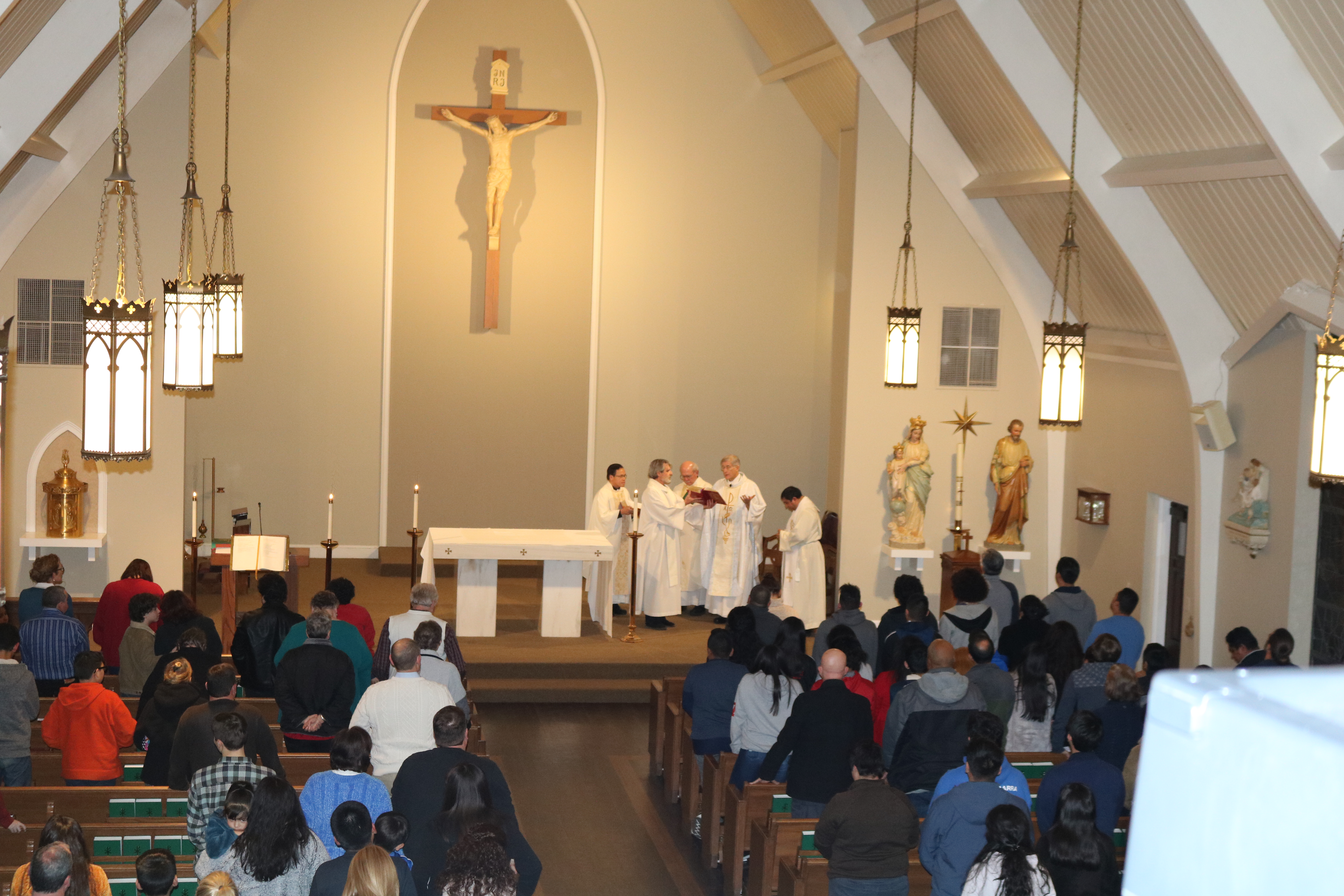 El obispo Kopacz, en su homilía bilingüe, explicó a los jóvenes el fundamento bíblico de dar la bienvenida al extranjero donde comparó a la Sagrada Familia con los inmigrantes de hoy.