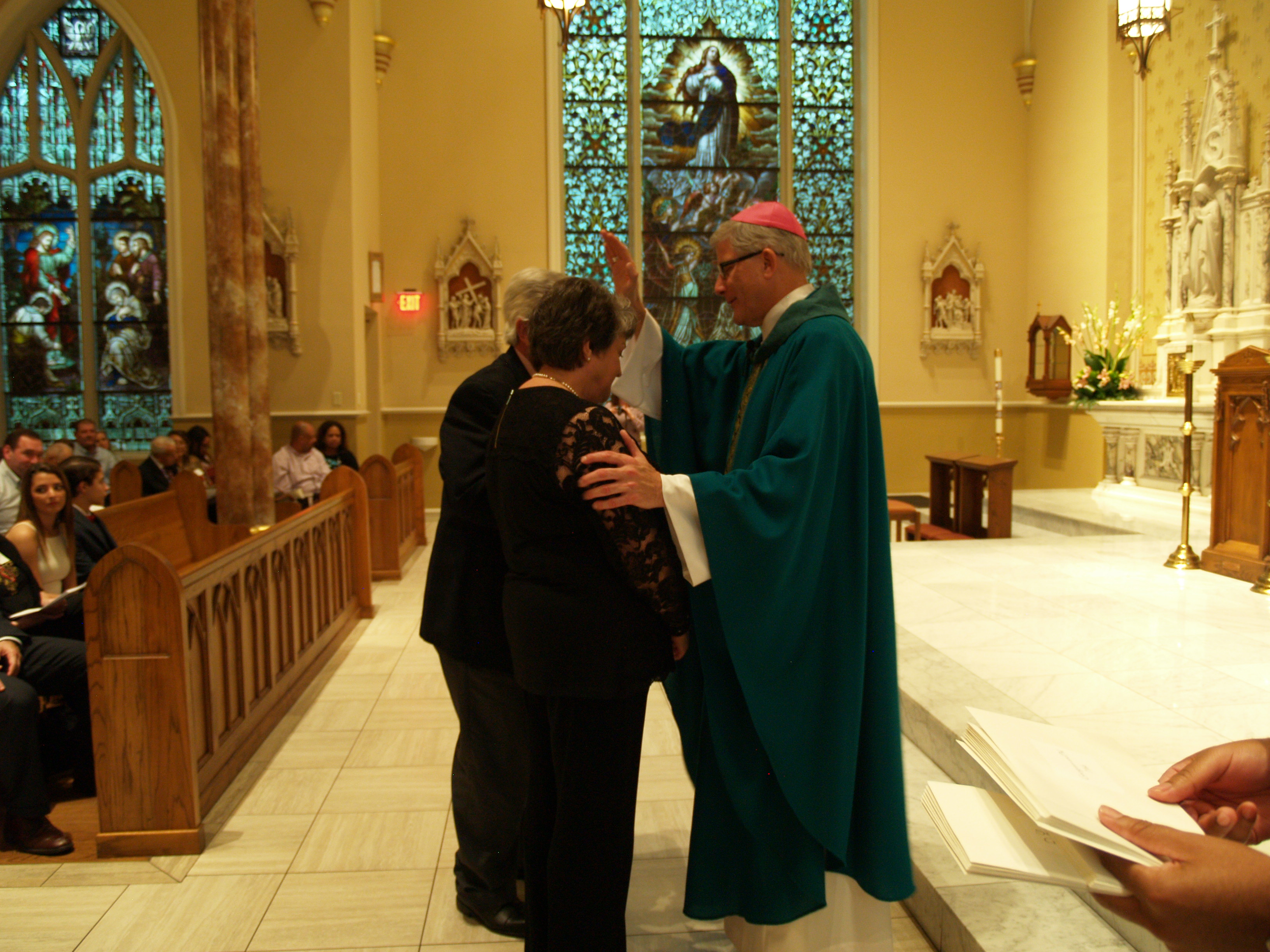 In his homily, Bishop Kopacz pointed out that marriage is successful through perseverance coupled with togetherness in experiences during stressful and joyful times. “A sense of humor is a key component,” he said while reminiscing about his parents married life. “Reflection of your parents’ actions can lead to success with your children and family.”
