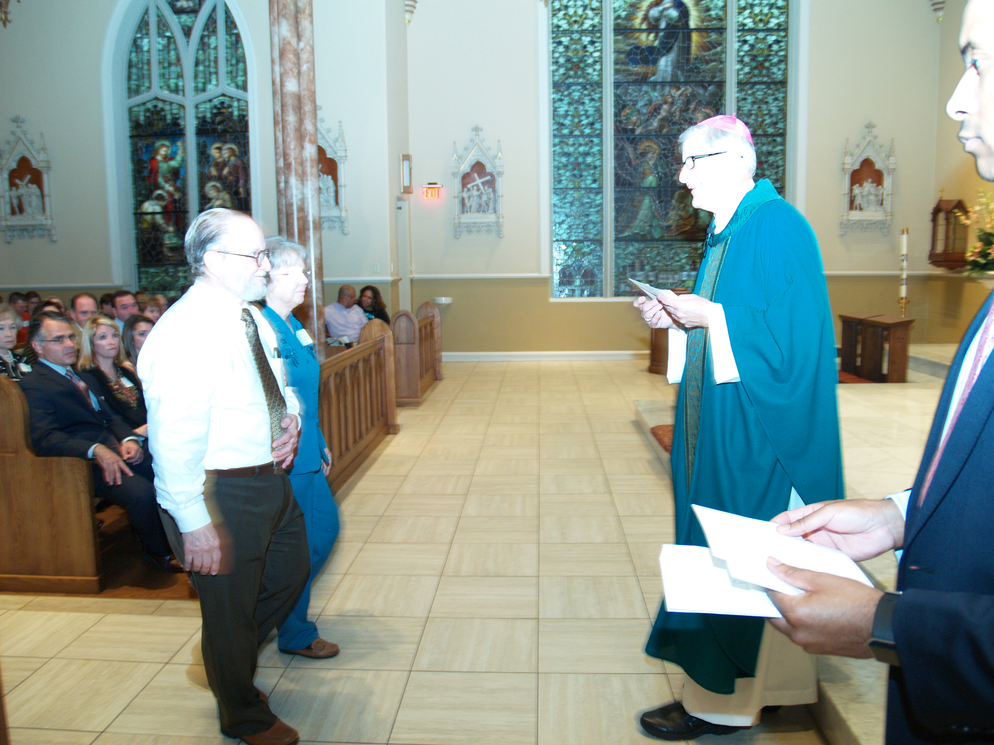 He also reflected on the Gospel of Matthew telling them their lives as couples are like the salt and light of the world and should be an example for others and for their own families. “Few days ago I deepened the union I shared with Jesus Christ in the sacrament of Holy Orders. Bishop Kopacz presented each couple a certificate of recognition.